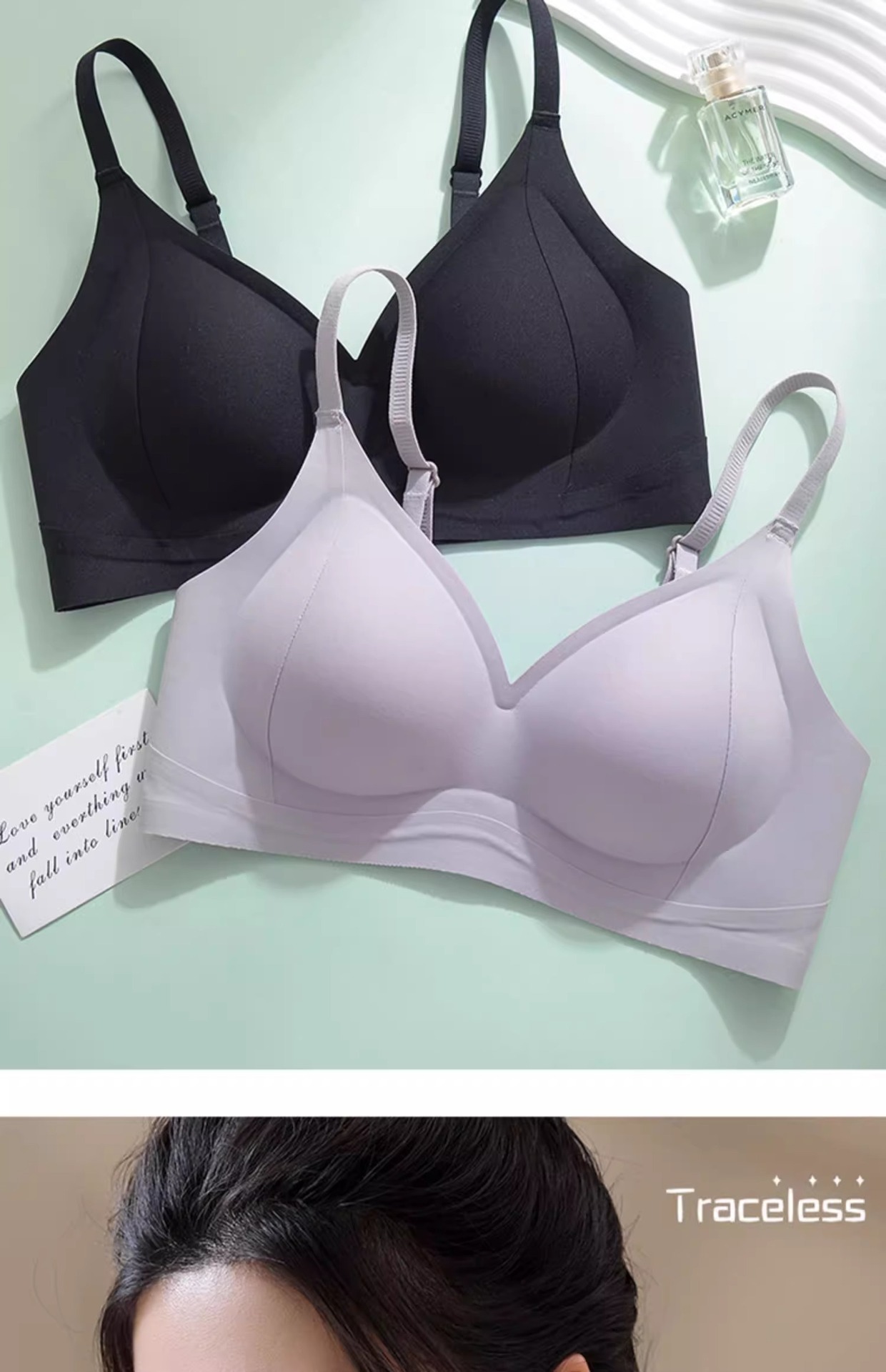 漫画風バストアップレディースブラジャー、美胸、空きカップなし、ソフトサポート、バストアップ効果、女性用シームレスブラ、夏用通気性