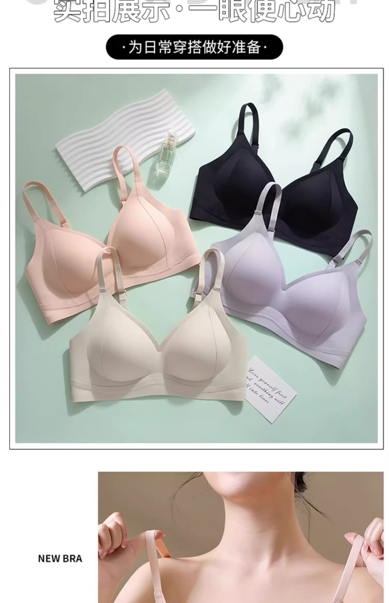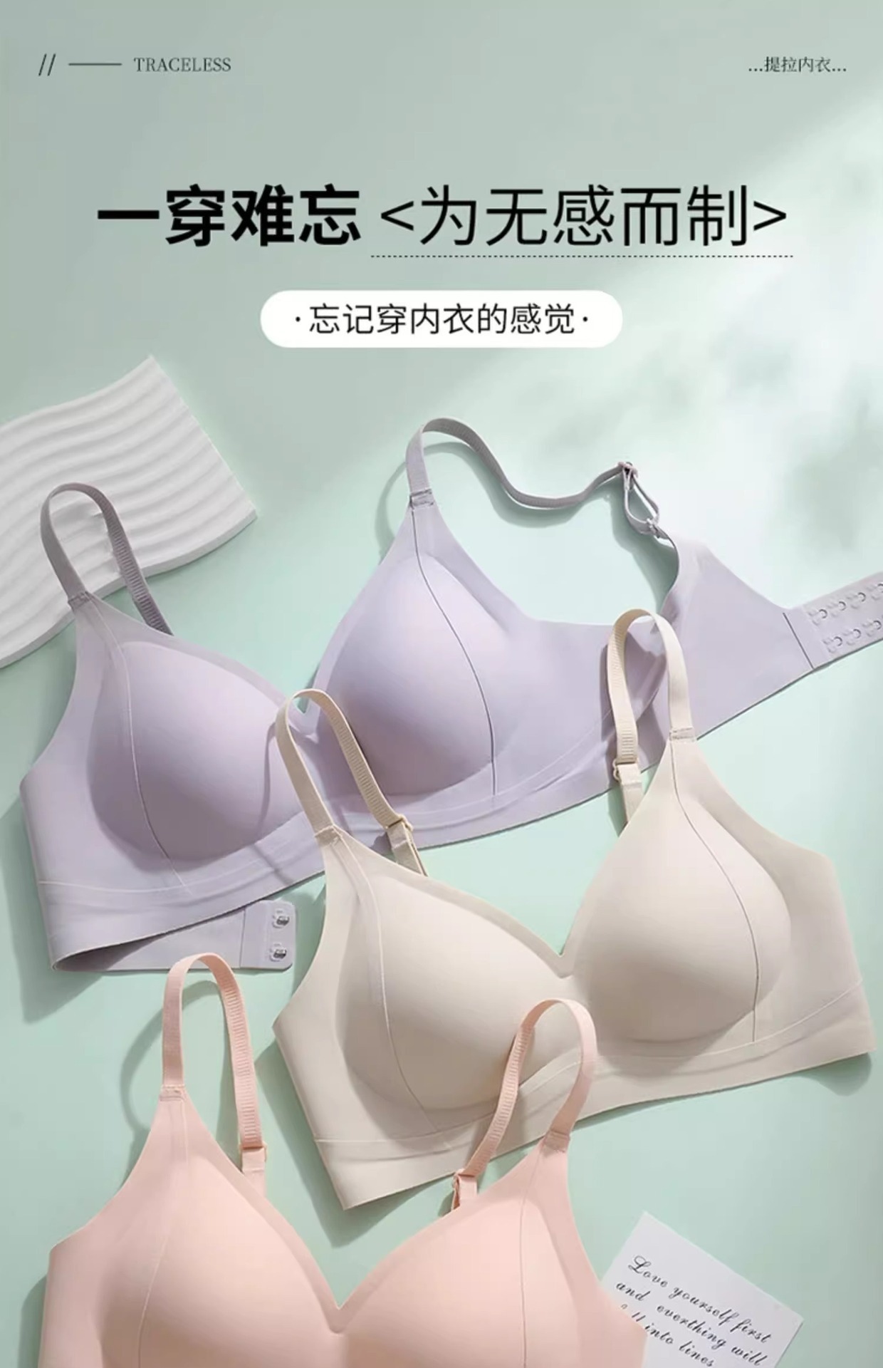 漫画胸聚拢无痕内衣女细肩带显腰固定手掌杯透气美背无钢圈文胸罩