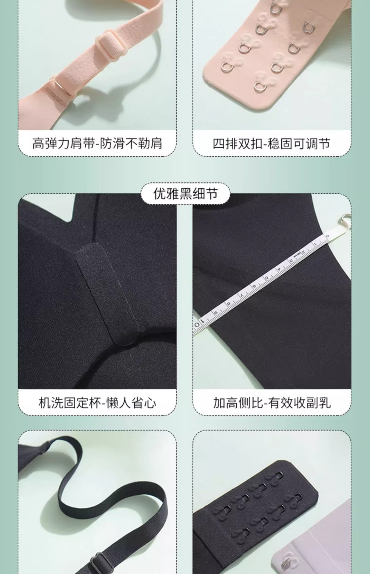 機能 集まる,痕跡なし,通気性のある,サポート,美しい背中,汗を吸収する,調整タイプ,快適な,サイドコレクション,副乳を閉じる,大きな胸が小さく見える