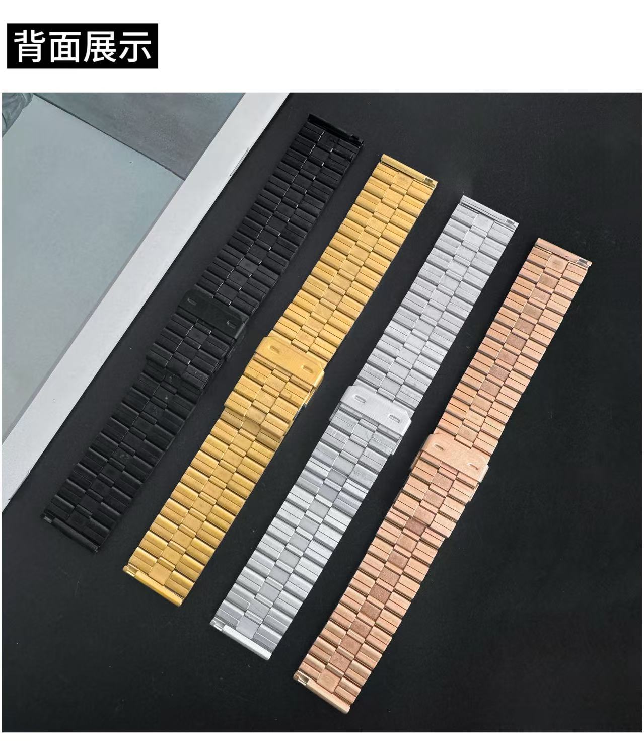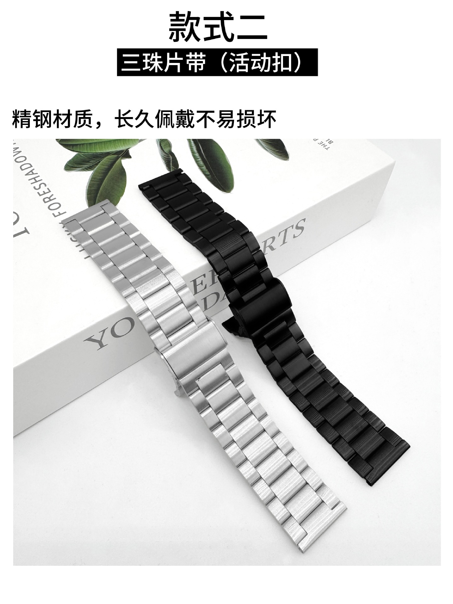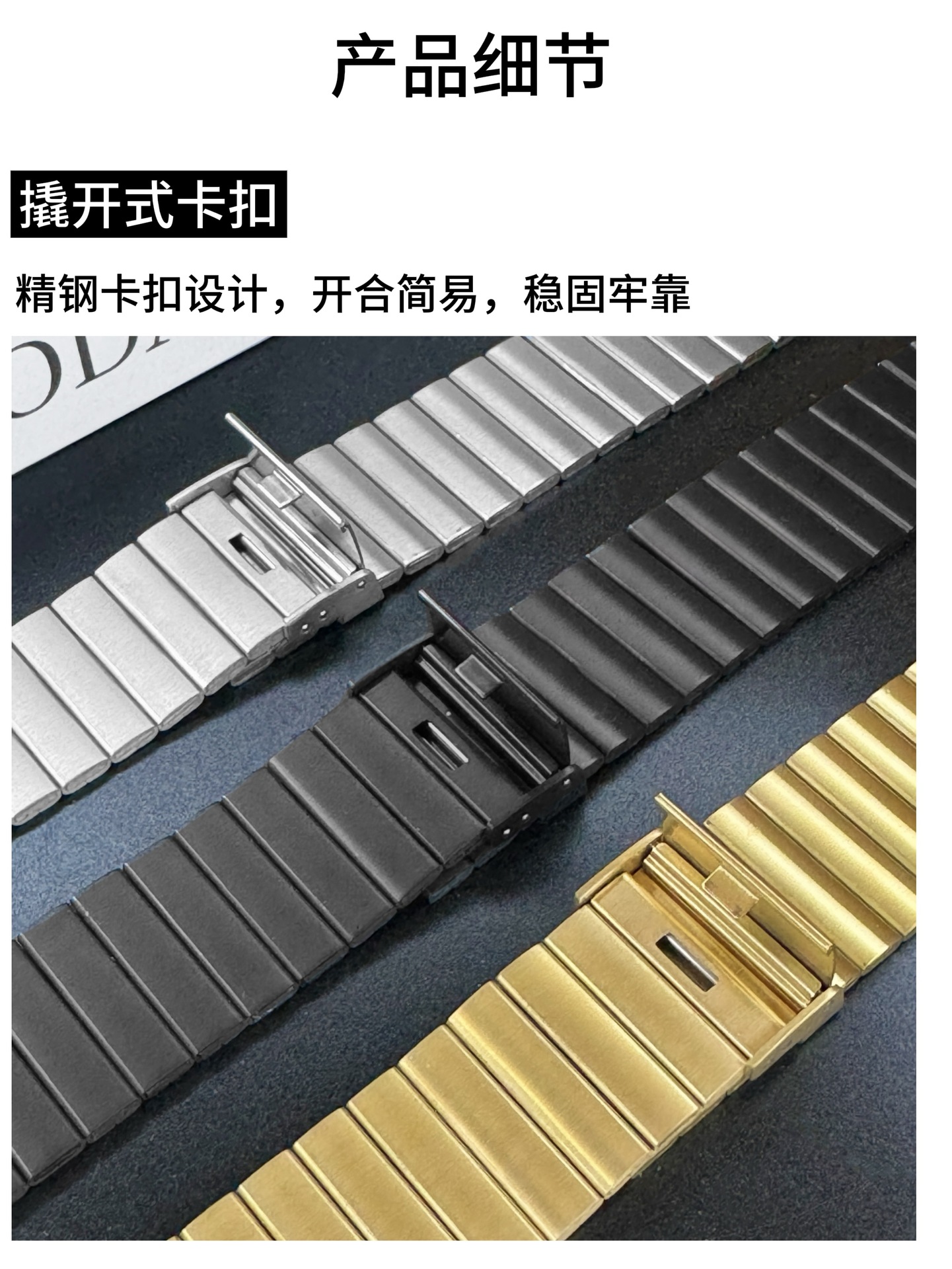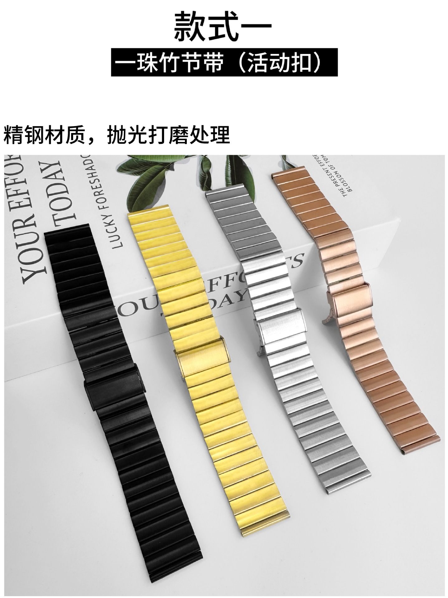 適用アップルステンレスバンド一珠竹節帯三珠金属華為バックル鋼板帯スマートウォッチ鋼帯