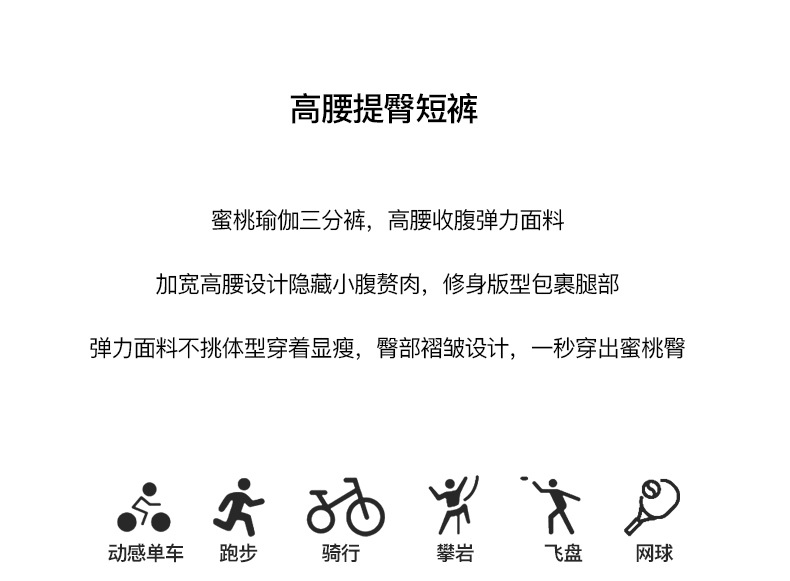 欧美蜜桃提臀运动短裤女高腰收腹显瘦跑步训练显臀速干三分紧身裤