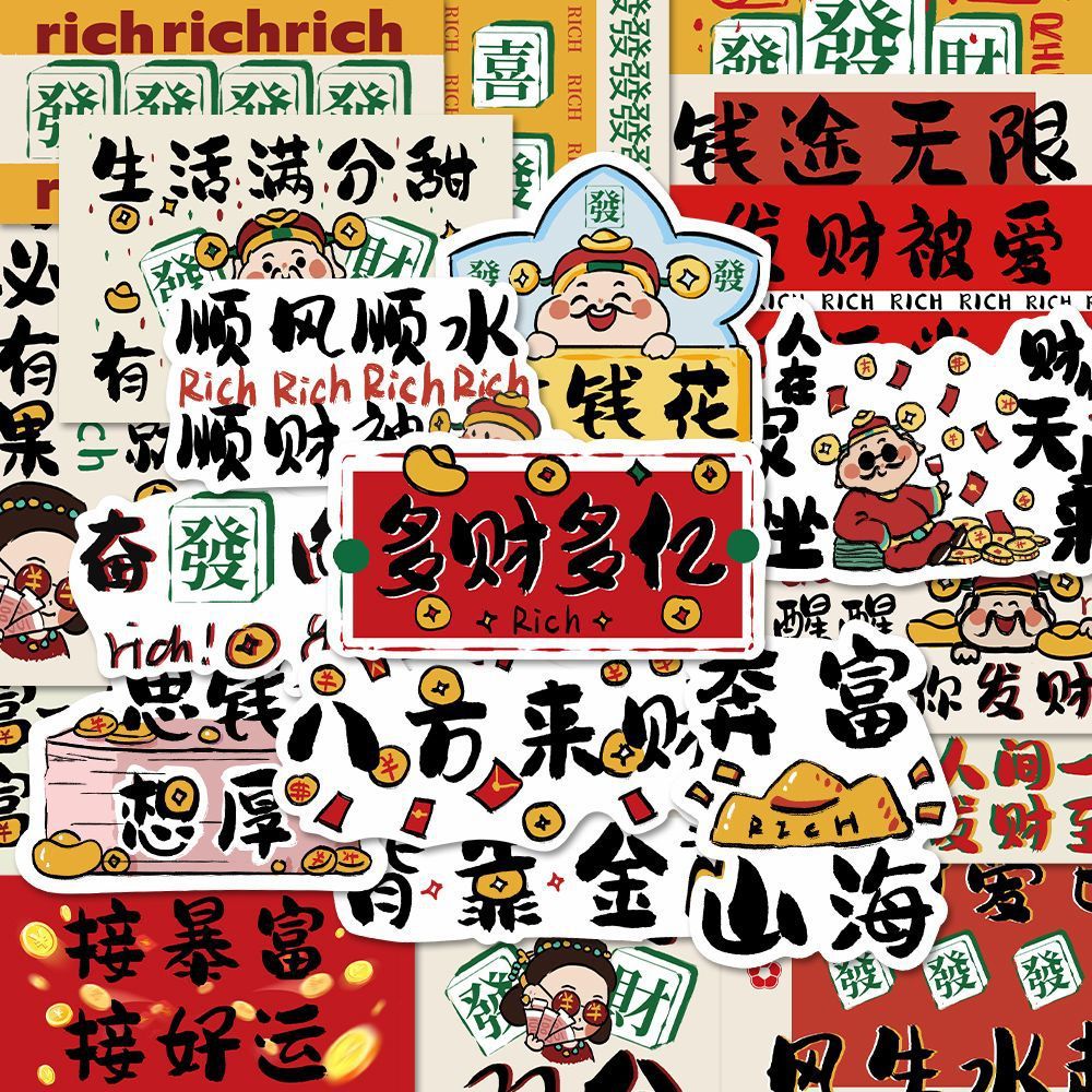 100枚のオリジナルのお金持ちステッカー、幸運のお金、インスタイル防水DIYハンドブック、携帯電話ケース、ノートブック