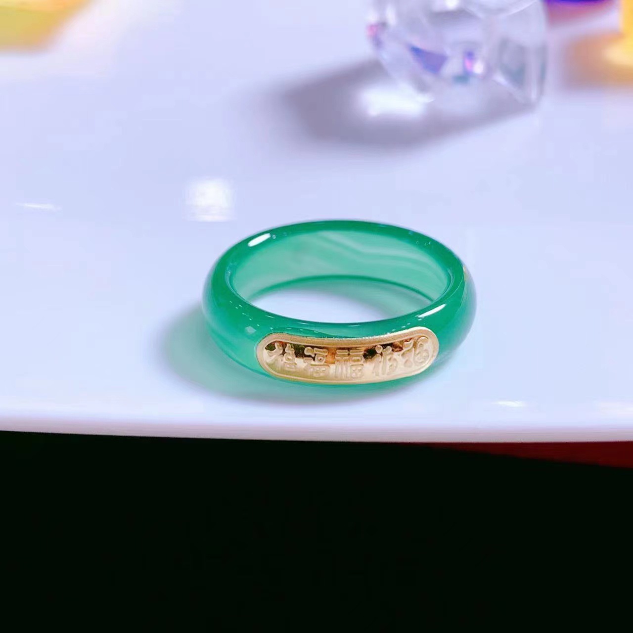 金の玉の福の字の指輪の五彩の玉髄の足金の男女のカップルの贈り物の玉の指輪の環は贈り物を販売して生放送します。