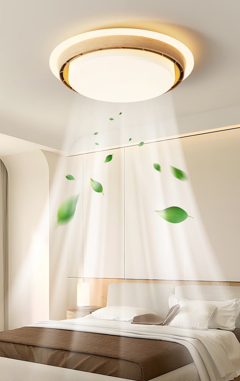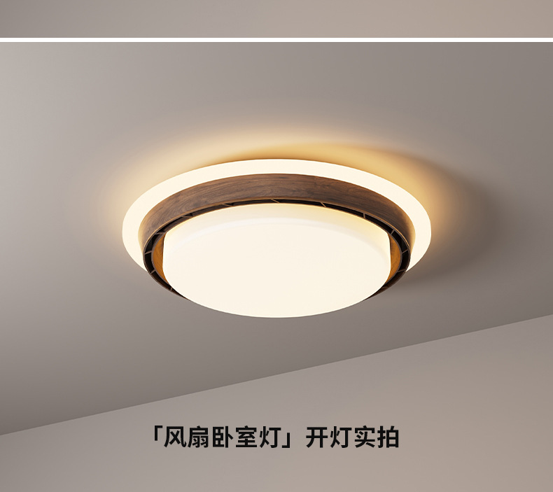 宋氏美学无叶风扇灯中古风卧室灯极简胡桃木色护眼静音房间吸顶灯
