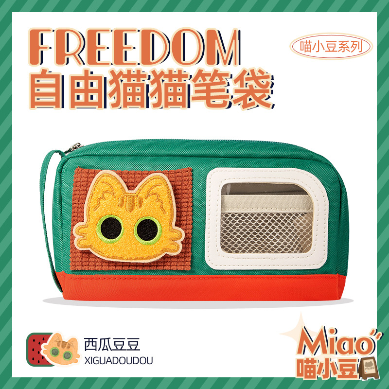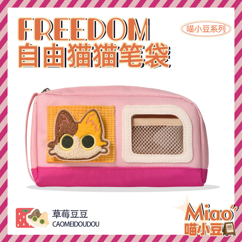 喵小豆魔术贴笔袋ins新款生气小猫手提卡通学生学生DIY猫猫文具袋