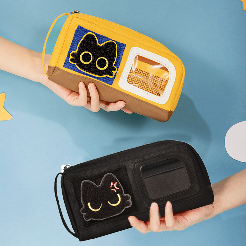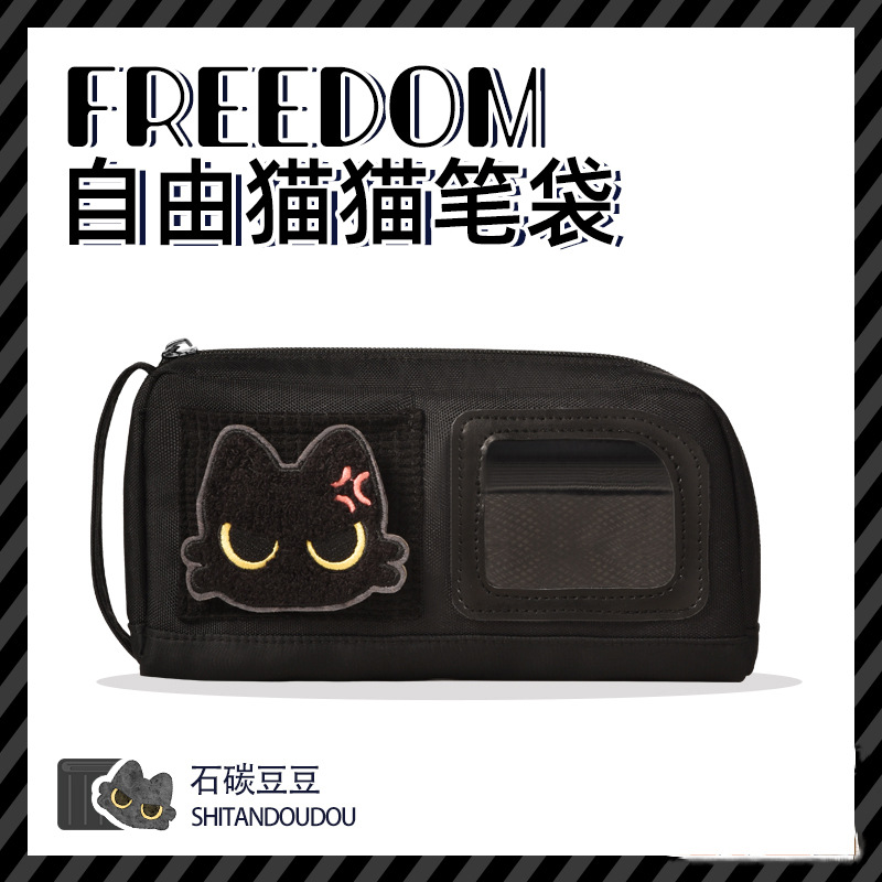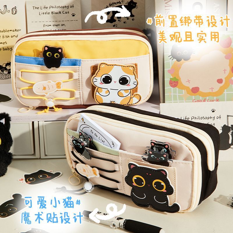 喵小豆猫咪魔术贴笔袋ins高颜值大容量ins可爱小黑猫文具铅笔盒