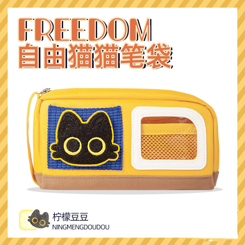 自由な猫のマジックテープのペンの袋insの新型の携帯多機能の漫画の学生の鉛筆の箱の文房具の袋