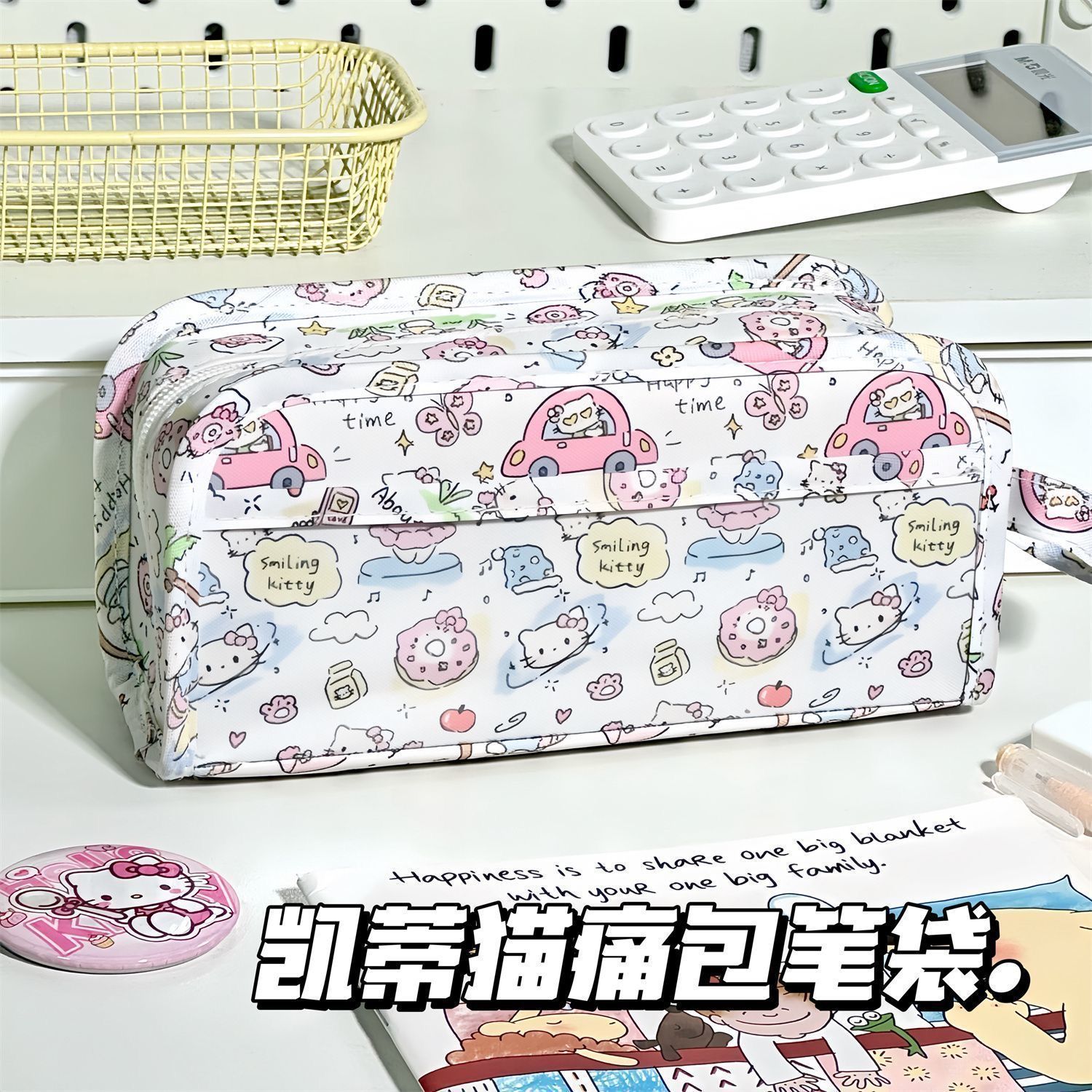 可爱いハローキティぬいぐるみ刺繍ペン袋ins少女心漫画大容量学生ピンク収纳袋