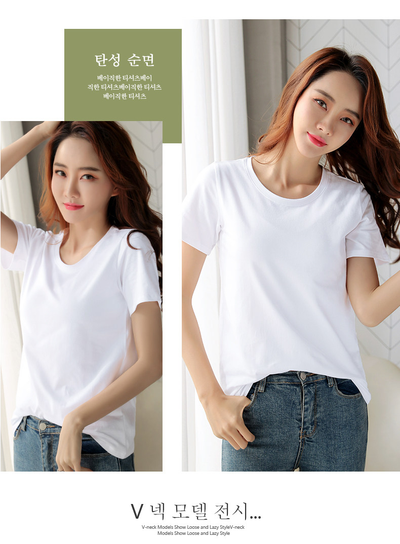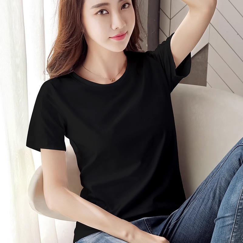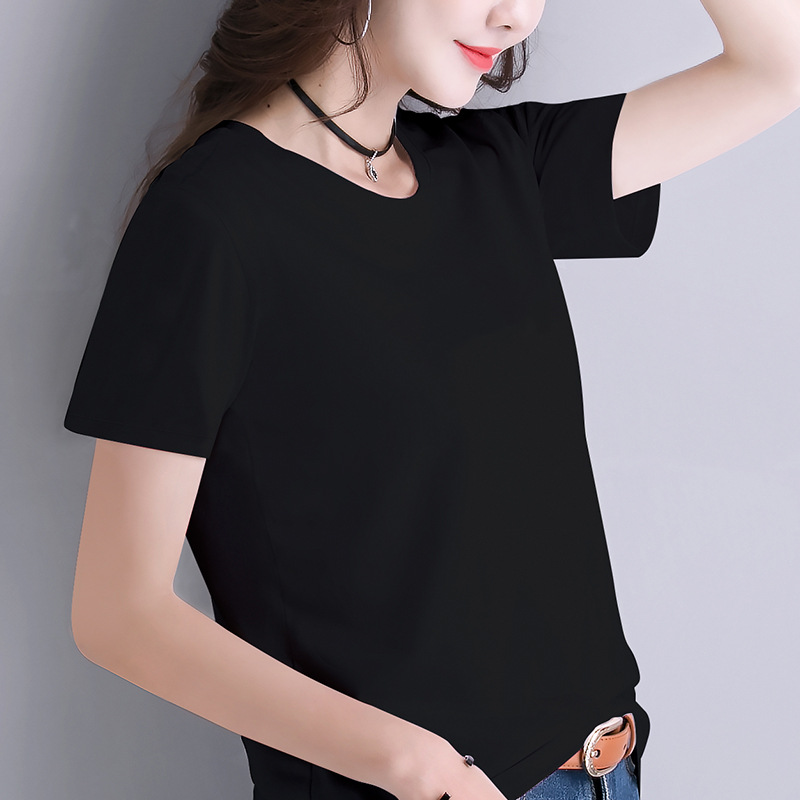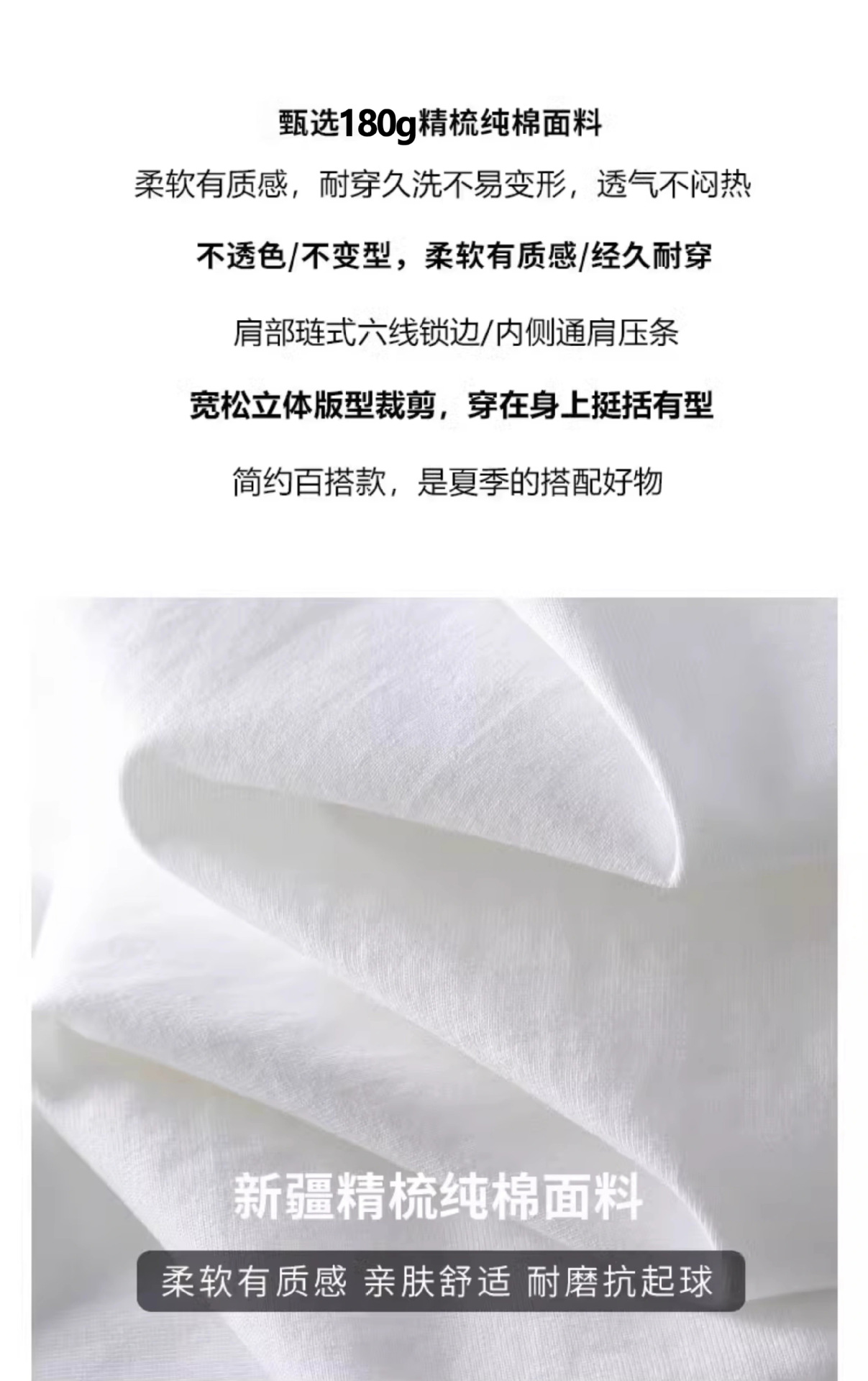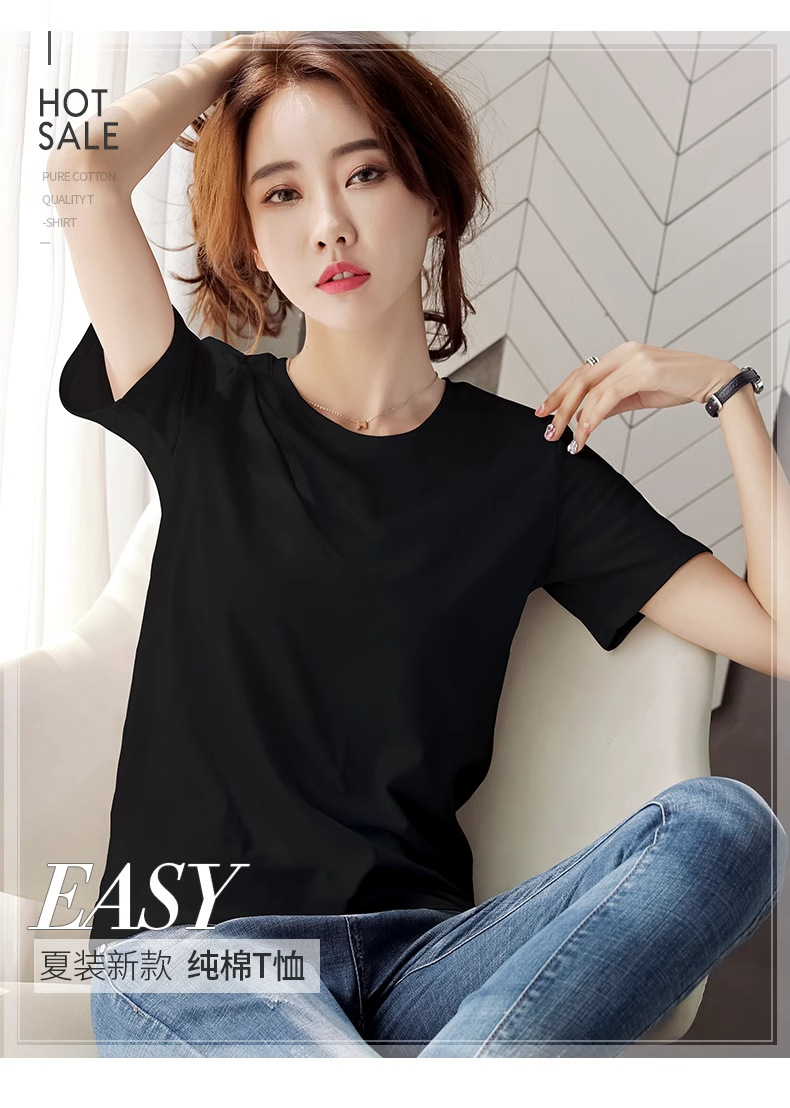 純綿の黒い白いtシャツの男女の半袖はゆったりしています。