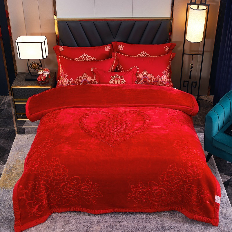 エンボス純色二重厚さラッセル毛布秋冬結婚祝いプレゼントカバー毛布二人でカバーできます。