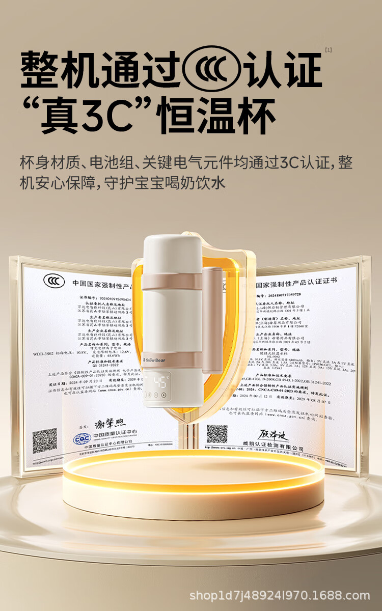 リトルホワイトベア恒温カップ電気加熱カップ赤ちゃんの外出ミルク調理アーティファクトワイヤレスポータブル断熱ケトルミルクレギュレーター
