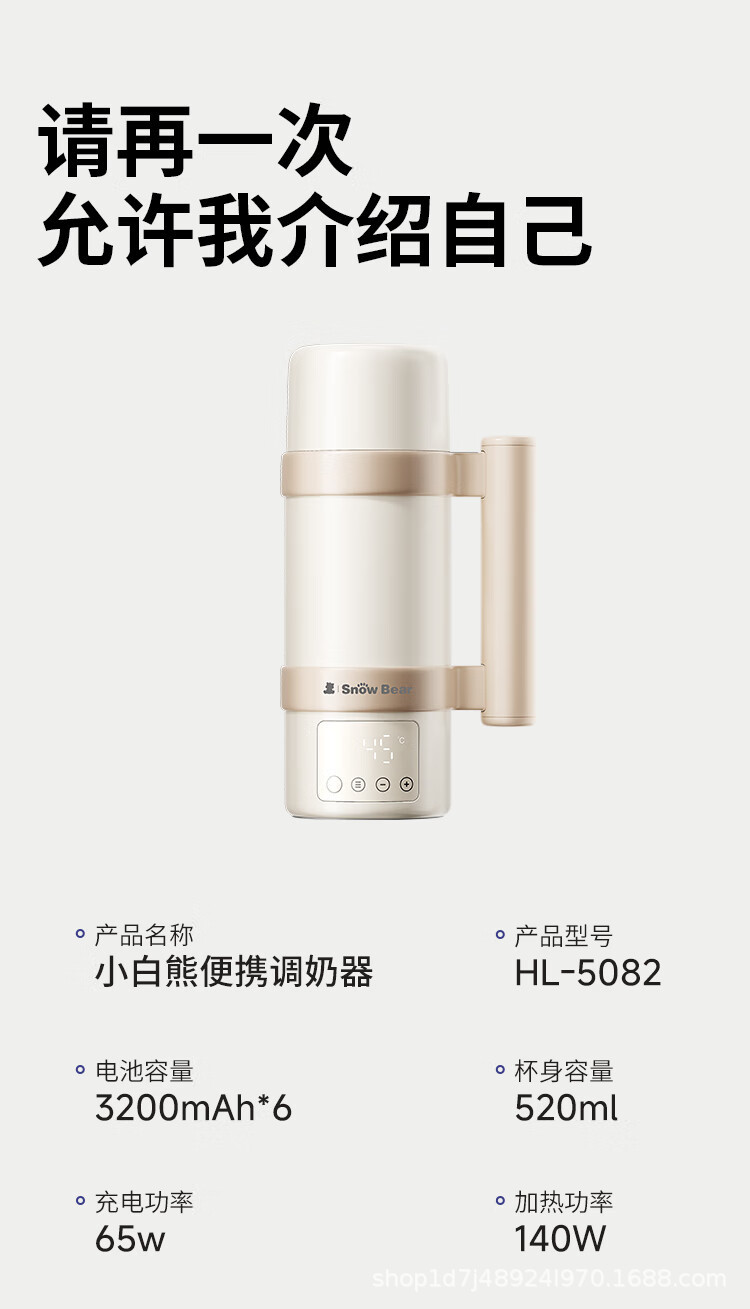 小白熊恒温カップ 赤ちゃん専用 持ち運び可能 給湯調乳保温水筒 ワイヤレスミルクウォーマー 温度調節機能付き