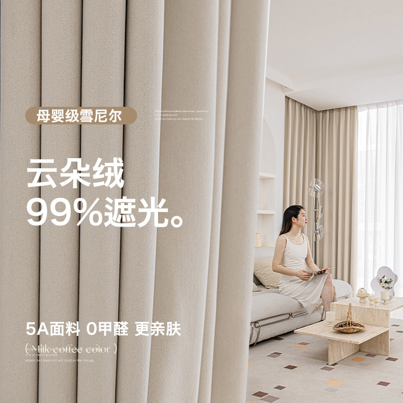 シェニール高級感クリーム風現代シンプルで贅沢な客間寝室紹興柯橋遮光カーテンカスタマイズ