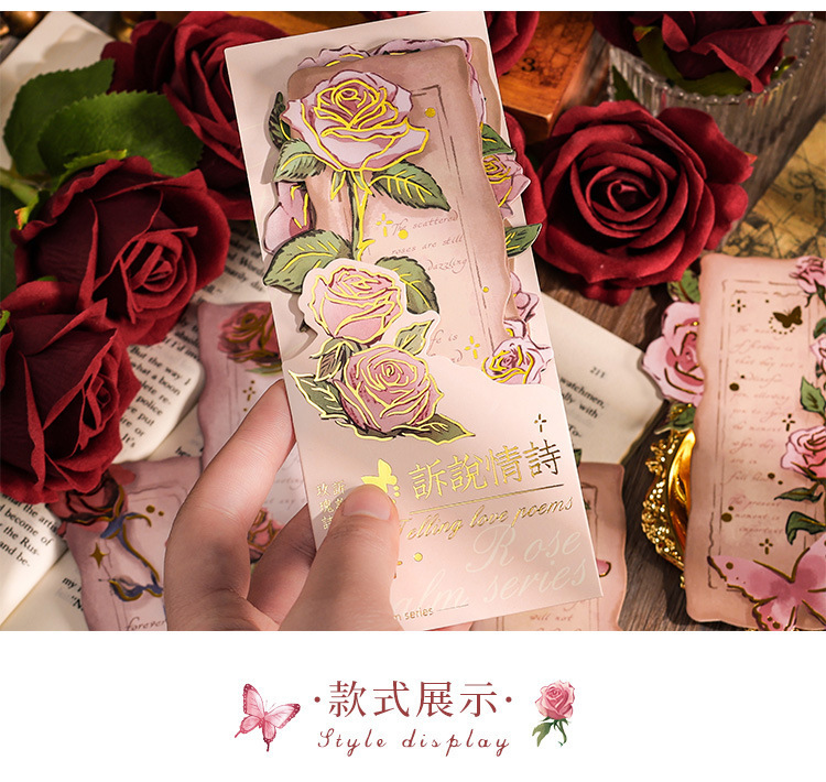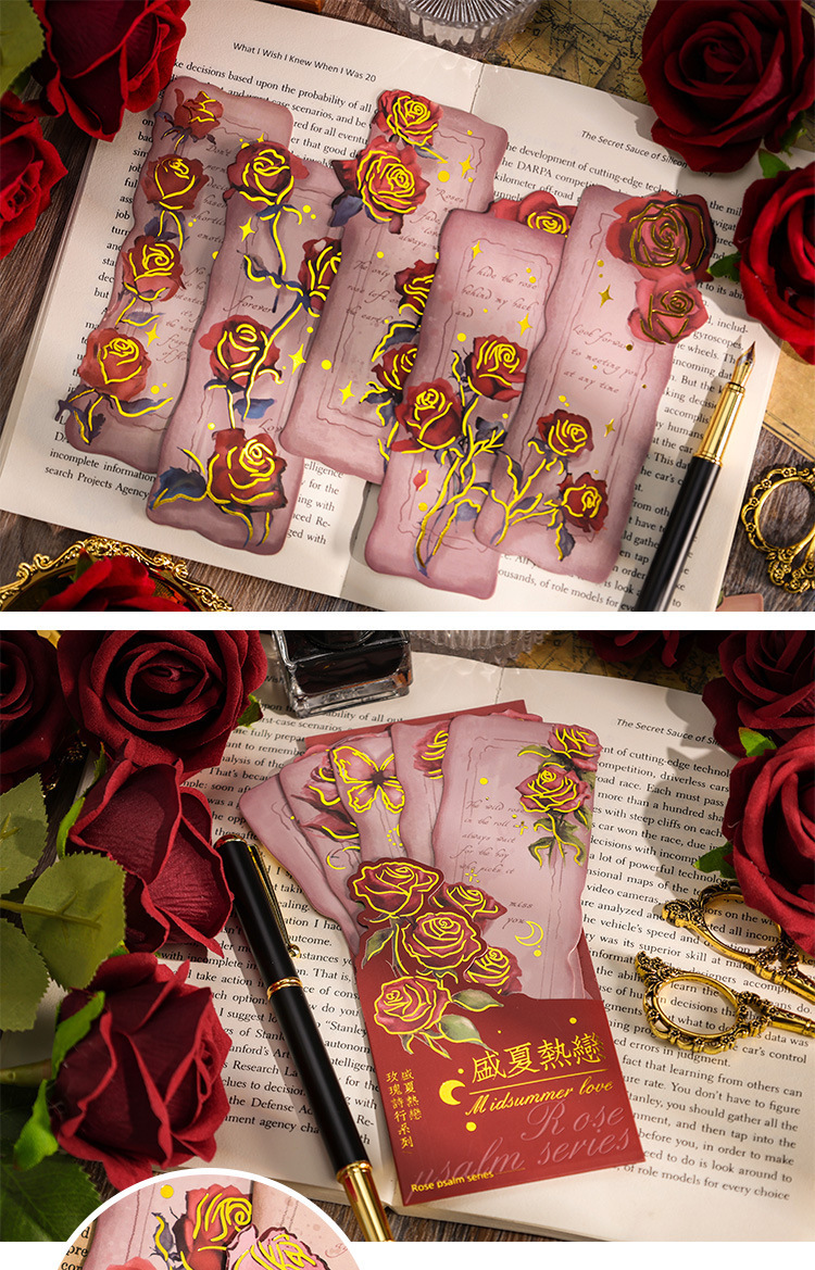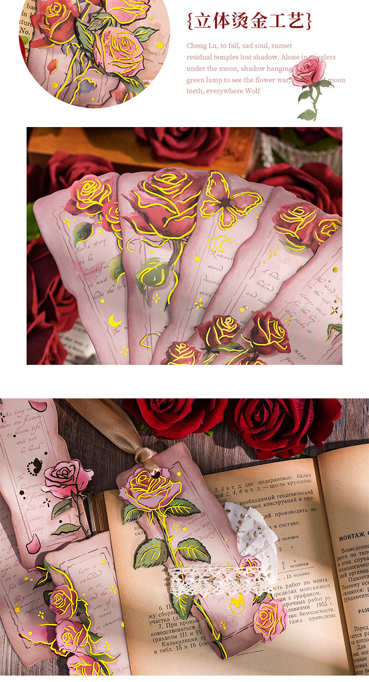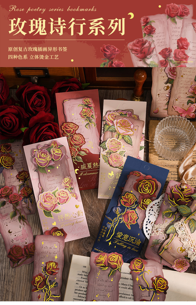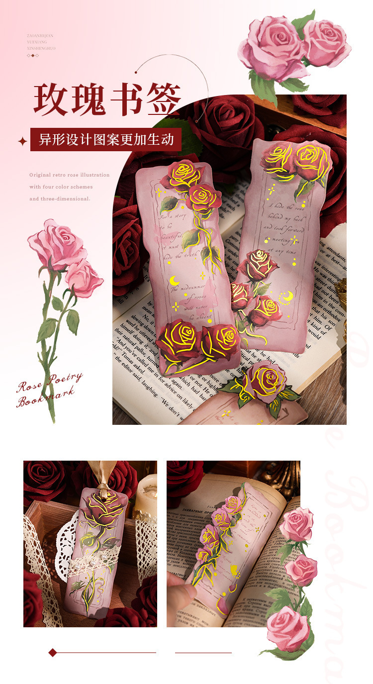ローズ詩ライン小学生レトロ手描き紙しおりインスタイルロマンチックなハイエンド読書インデックスハンドブック diy
