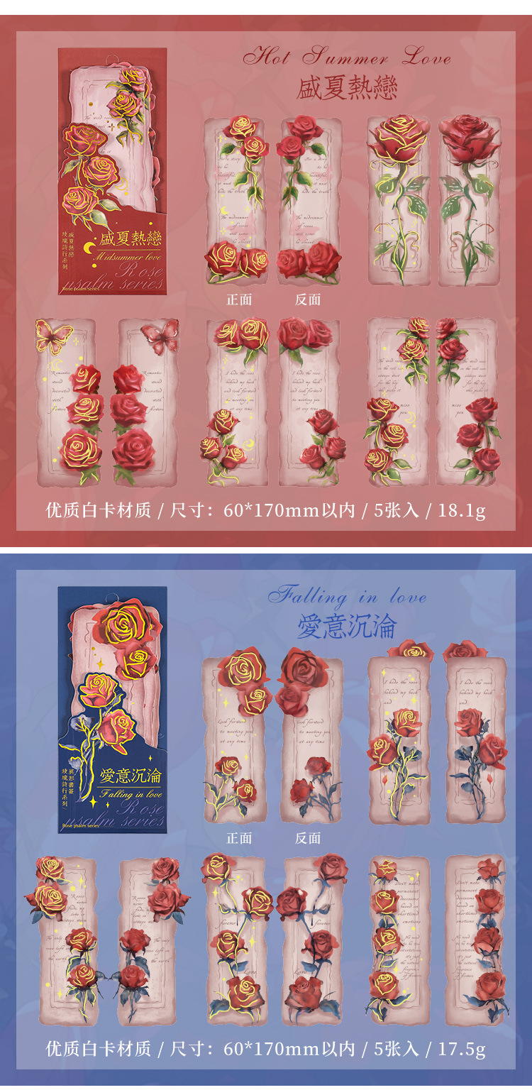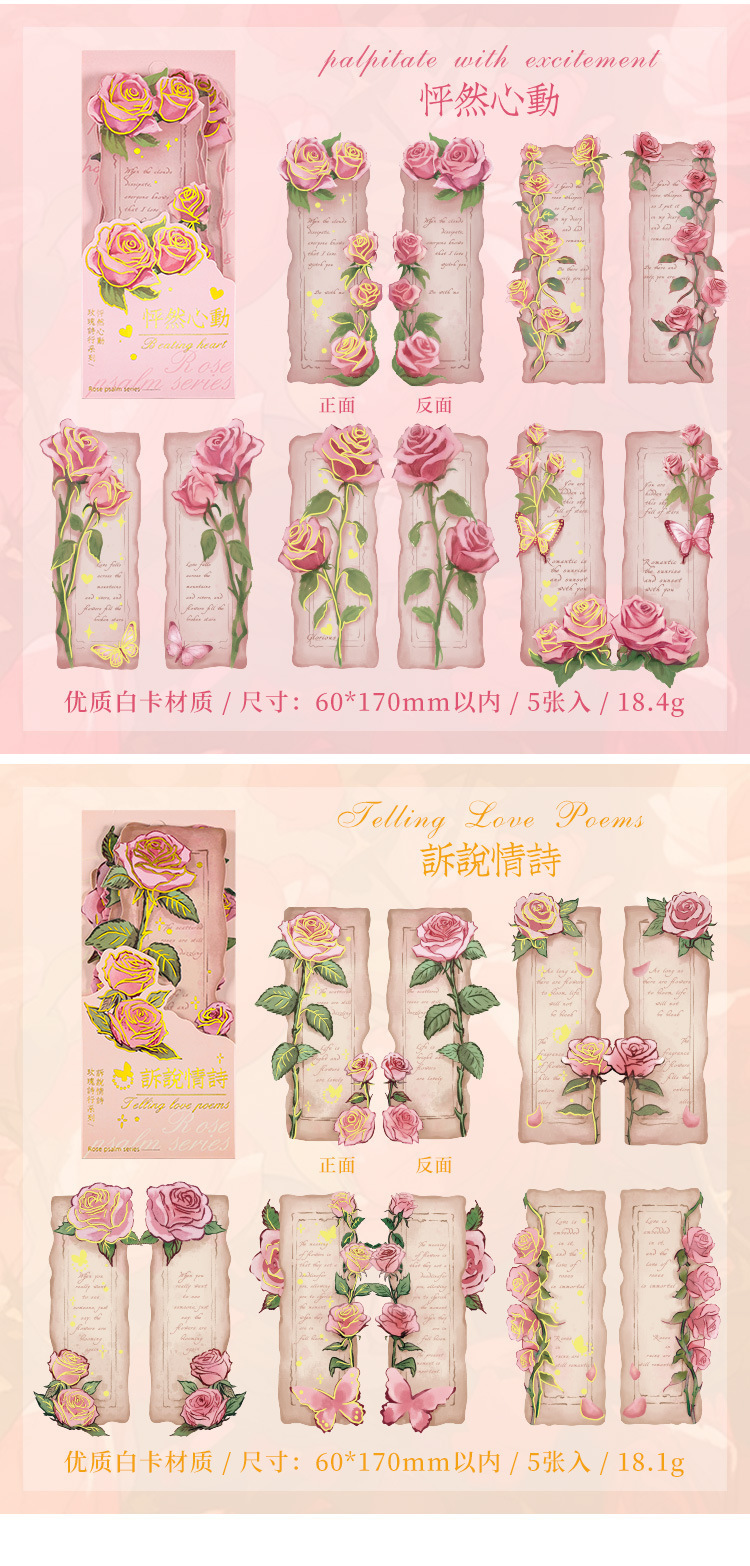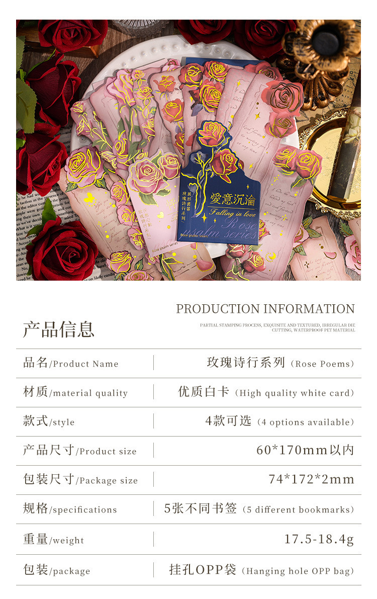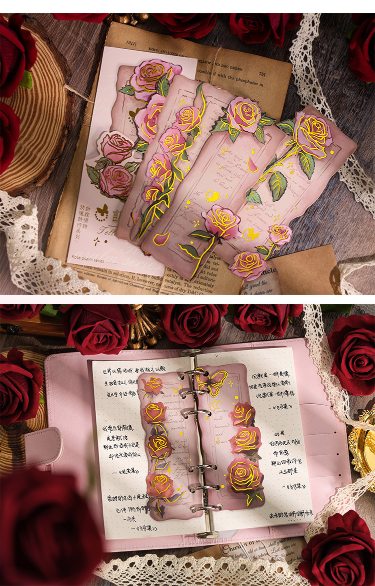 ローズ詩ライン小学生レトロ手描き紙しおりインスタイルロマンチックなハイエンド読書インデックスハンドブック diy