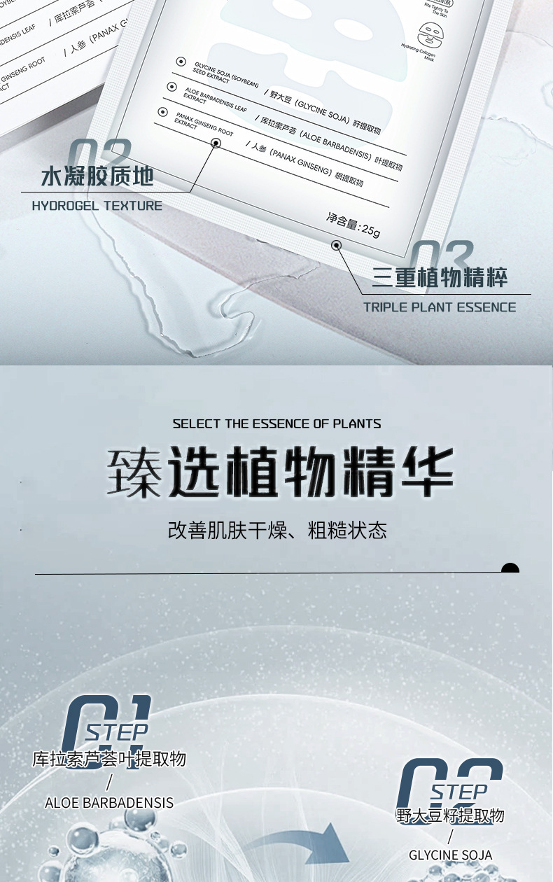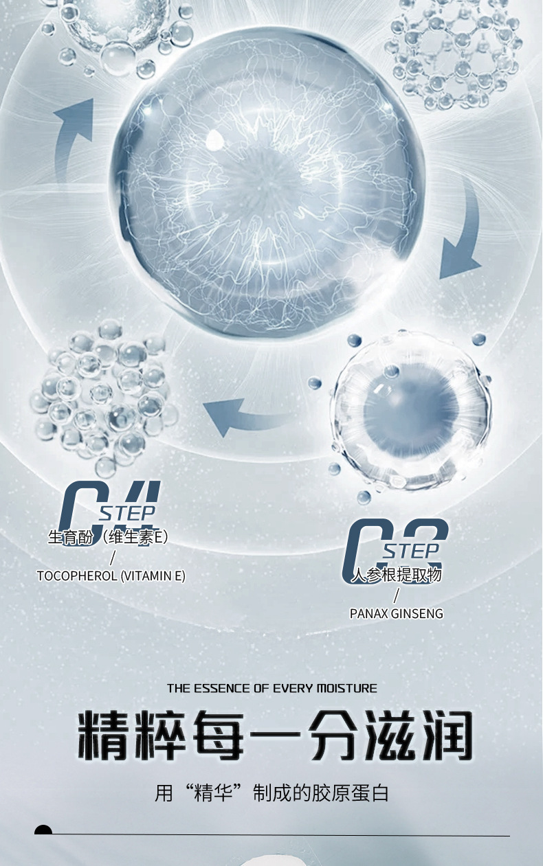 ウェイ・シュエと同じ人気商品、水光コラーゲンマスク。若返り、抗炎症、保湿、抗シワ、引き締め効果。
