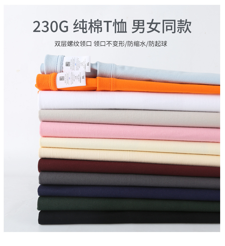 重ポンド230グラム精櫛純綿正肩tシャツ夏男女純色シンプルな丸襟半袖卸売り