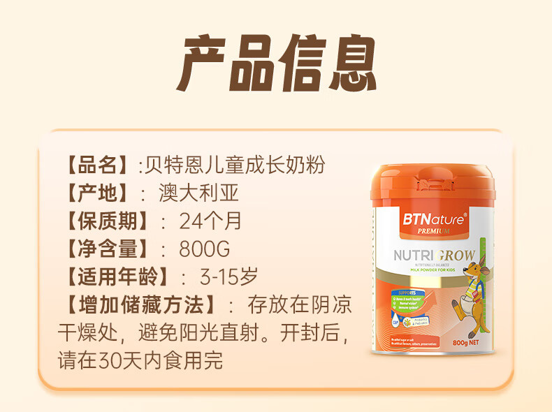 オーストラリアBTNatureベトエン児童成長青少年粉ミルク3-15歳800g