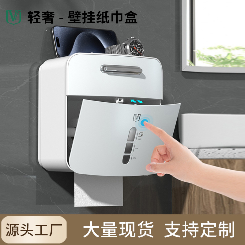 维简卫生间纸巾盒浴室洗手间免打孔厕所卷纸卫生抽纸多功能收纳盒
