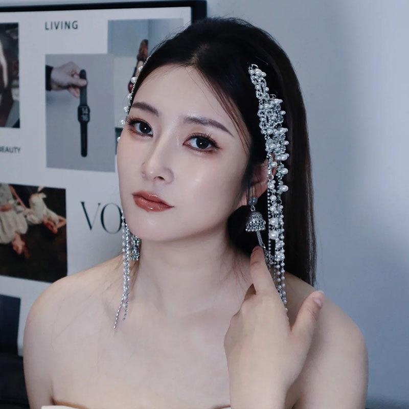 銀色のドリル真珠のフリンジヘアは民族風の軽い豪華な髪飾りの新婦の頭飾りの小さい大衆のデザイン感のモンゴルのサイドクリップを挟みます。