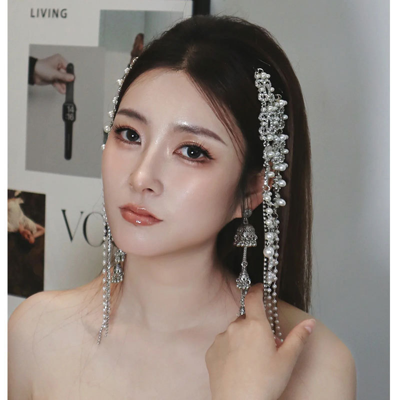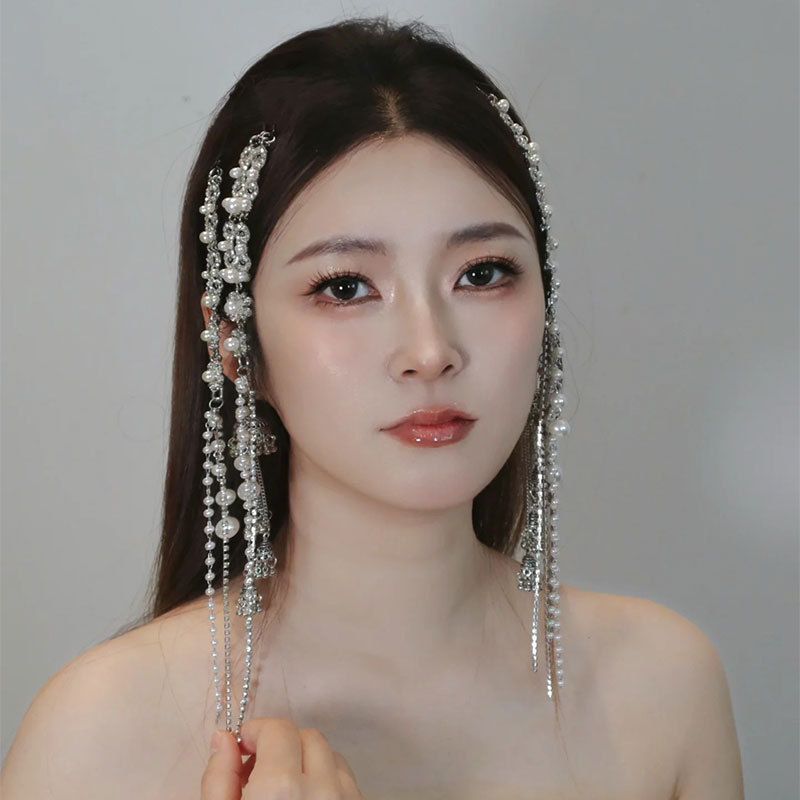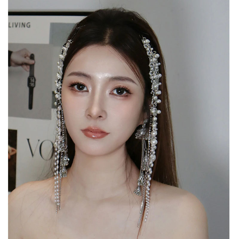 易夢玲同金 ~ 民族風銀色のフリンジヘアクリップ女性の高級感のあるロングサイド前髪クリップ