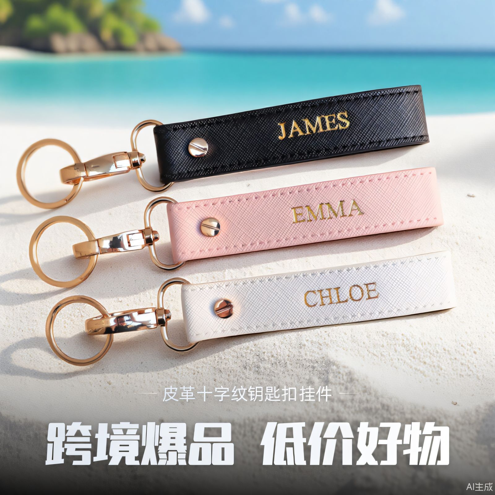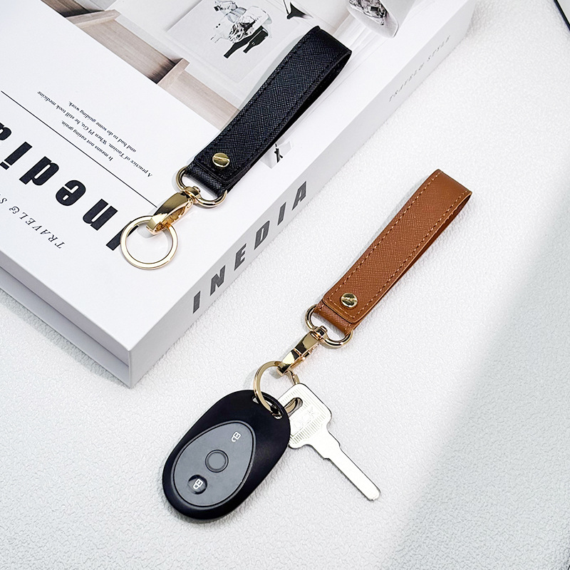 2025新款时尚简约十字纹皮革箱包配饰现货钥匙扣挂件带五金钥匙圈