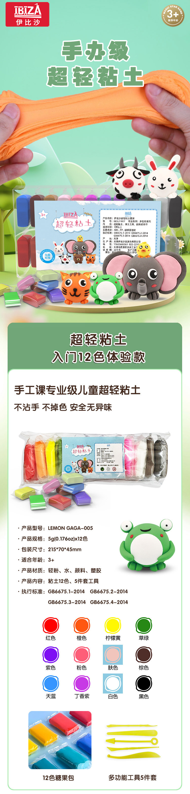 IBIZA伊比沙儿童轻泥乐轻粘土糖果色彩泥黏土橡皮泥幼儿园DIY玩具