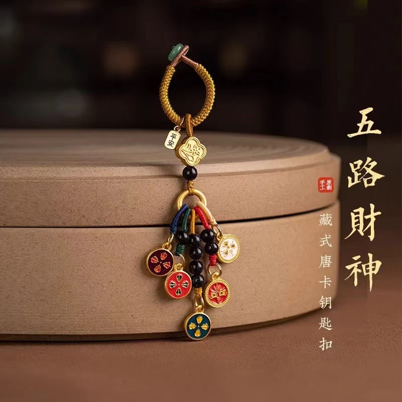 新商品の国潮風唐カード五路財神のキーホルダーは幸運の創意の手作りの自動車の鍵を掛けて贈り物をします。