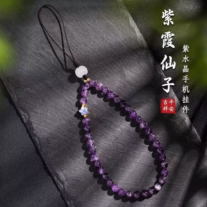 新中国式紫霞仙子紫水晶の携帯チェーンのストラップの手首のタイプの女性の精巧な手作りの中国風は掛けます。