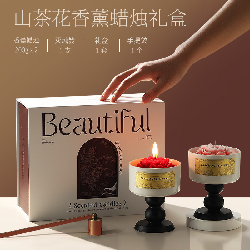 女性の日(3月8日)椿の香りのアロマキャンドルギフトボックス、会社の開店祝い、結婚式の記念品、高級な香りの贈り物