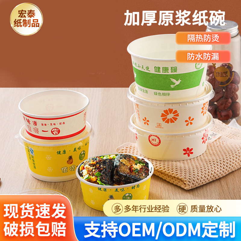 使い捨て紙ボウル カスタムラウンド型テイクアウト容器 スープボウル スープカップ 紙パルプ粥カップ ロゴ入りエコ紙ボウル
