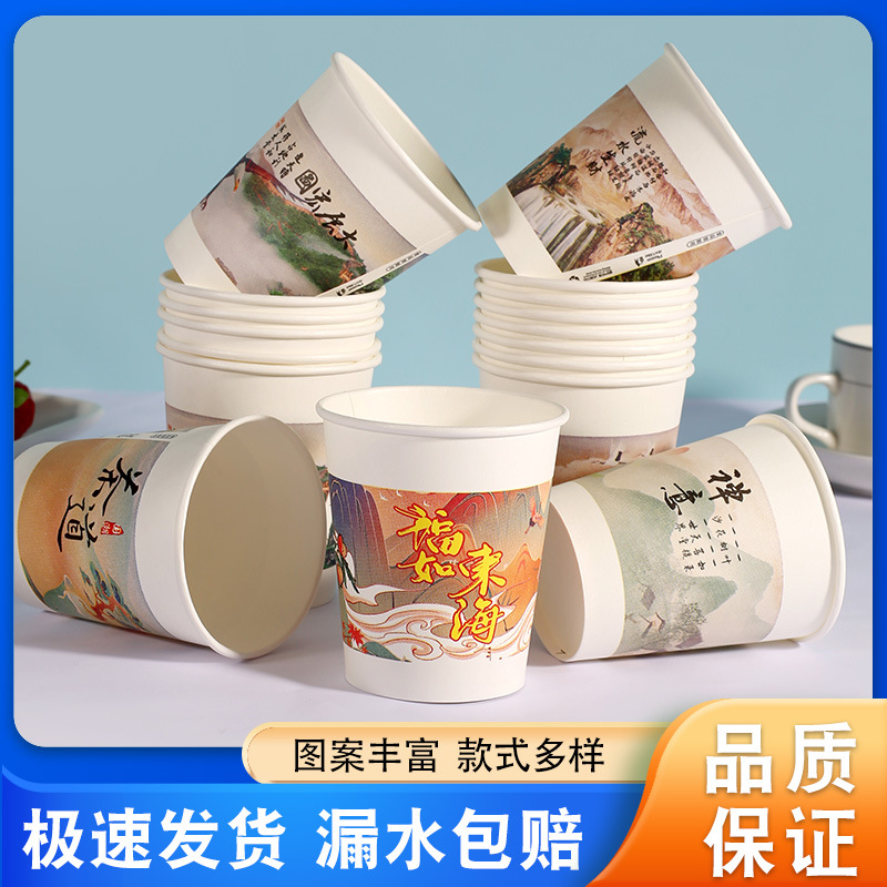 使い捨て紙コップのカスタム印刷ロゴは家庭用ビジネス中空カップのカスタムパーマ防止広告カップ卸売りを厚くする