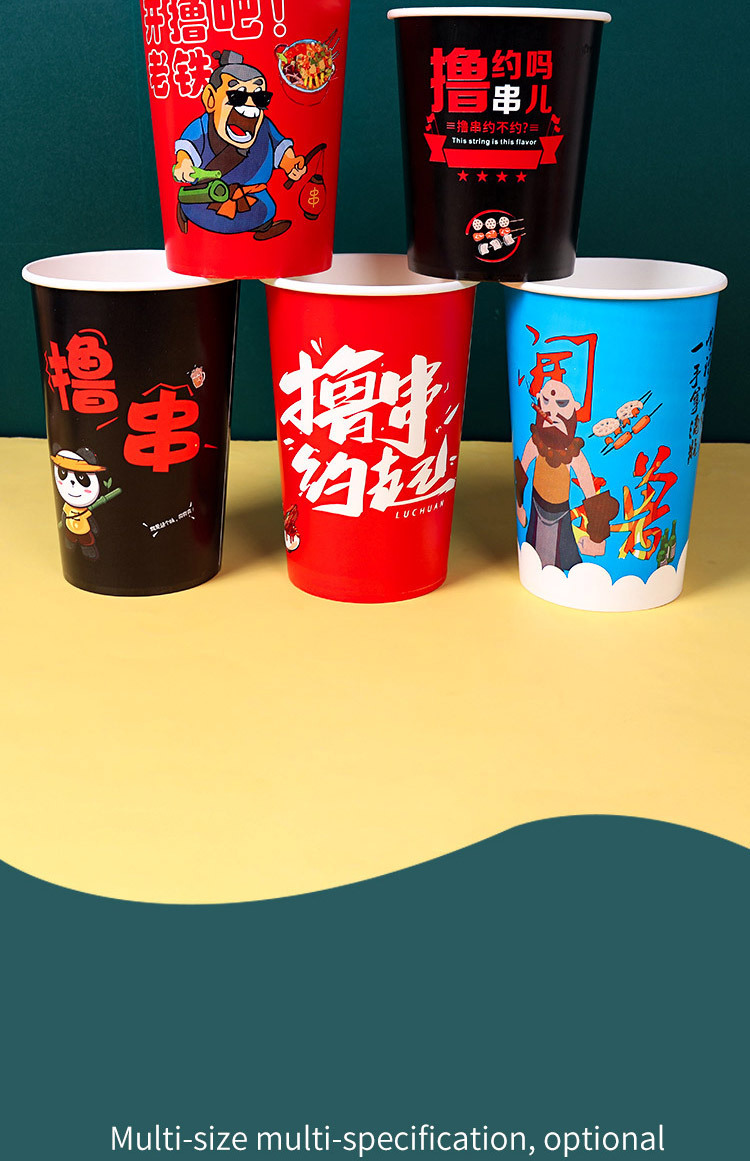 カスタムメイド使い捨て串桶、おでん桶、鶏肉桶、紙桶、テイクアウト用紙コップ、厚紙串桶、印刷柄入り