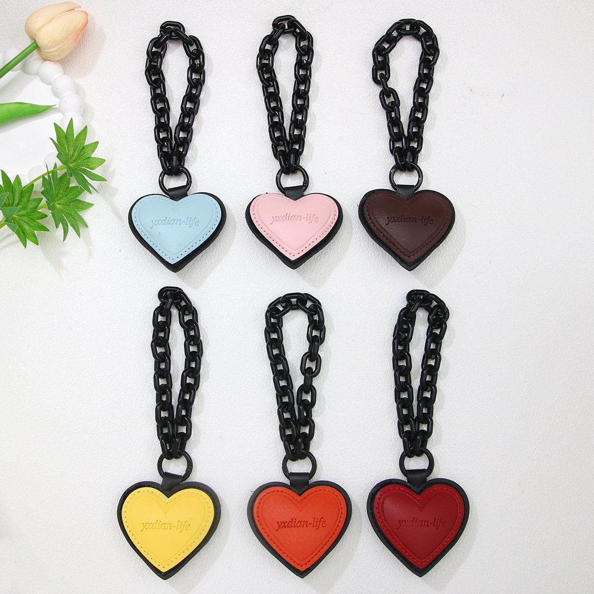 国境を越えた人気商品、ダークな鉄の鎖とハート型の革製ペンダント、トレンディなキーホルダー、カップルバッグ用の小さな飾り、卸売