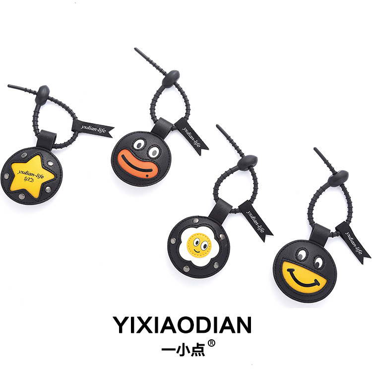 オリジナル本物のクールな黒のペンダントニッチスマイリーフェイス面白いレザーキーホルダーバッグ小さなペンダントハイエンドクロスボーダー卸売