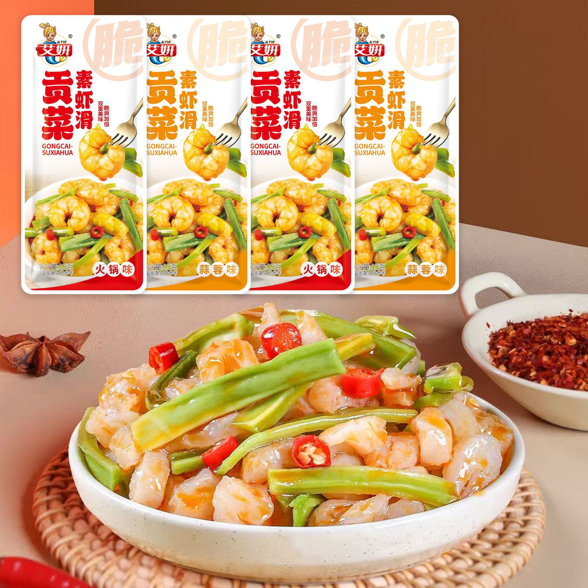 梱包仕様 愛燕こんにゃくトリビュート 野菜 15g ガーリック風味,愛燕こんにゃくトリビュートディッシュ 15g スパイシー味,愛燕こんにゃくトリビュートディッシュ 15g 酸辣味,アイヤン ゴンサイ ベジタリアン エビ スライド 15g ガーリック風味,アイヤントリビュートベジタリアンシュリンプスライド 15g 鍋味,アイヤン胡麻だれこんにゃくトリビュート野菜コリアンダー胡麻だれ味 15g,アイヤン 麻酱こんにゃく献上料理 鍋麻酱味 15g,アイヤン ガーリックソースクリスプ 14g,アイヤン 麻酱脆 14g