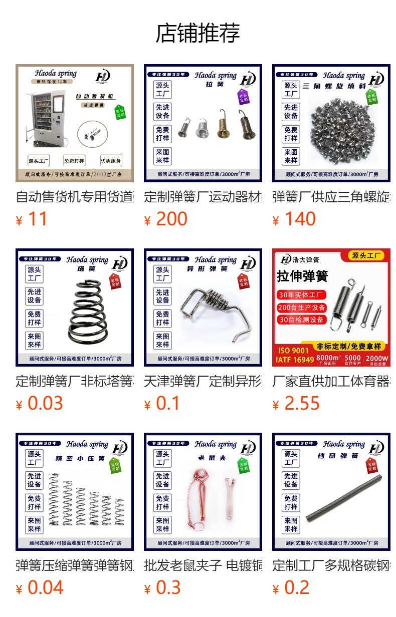 加工製作金物ばね部品線径0.2-8mmステンレスマンガン鋼引きばね引張ばね部品