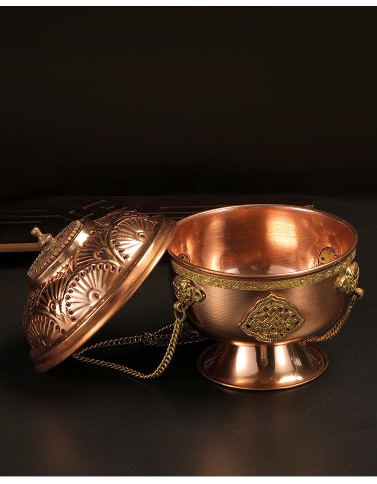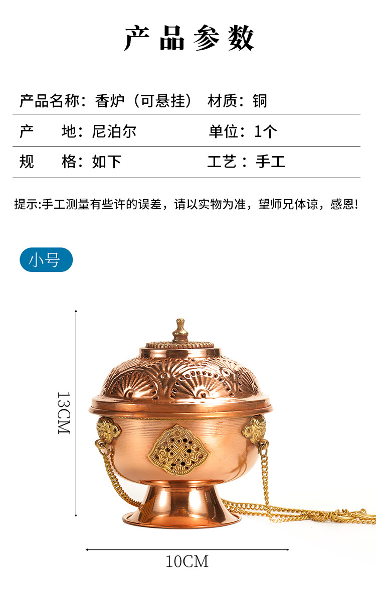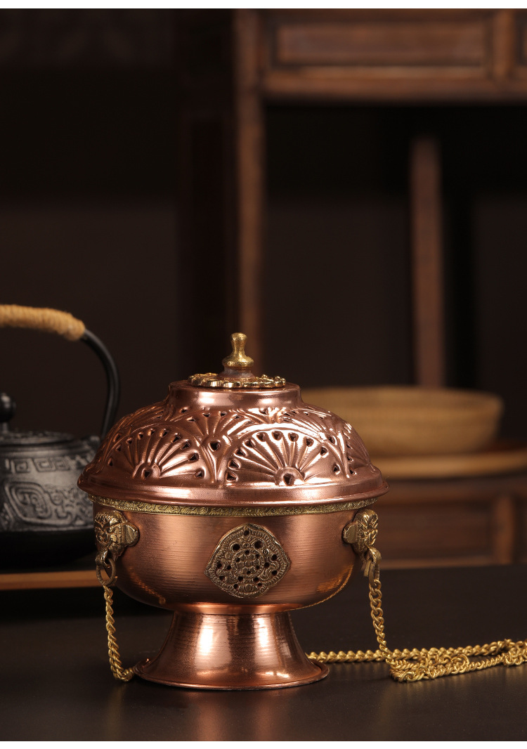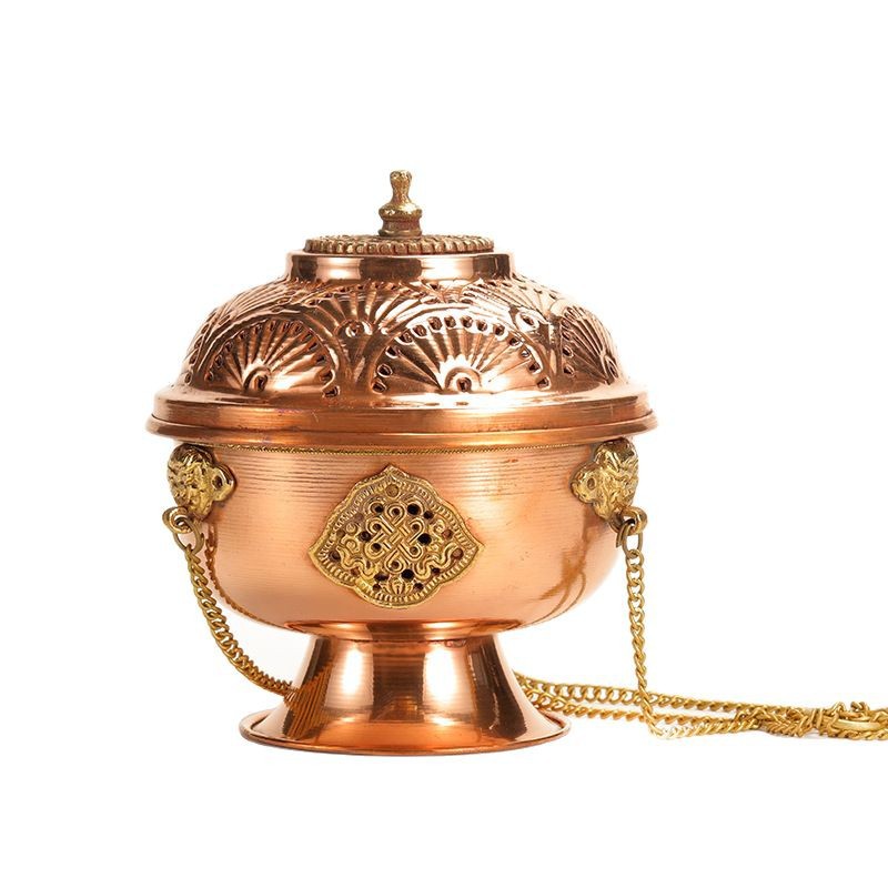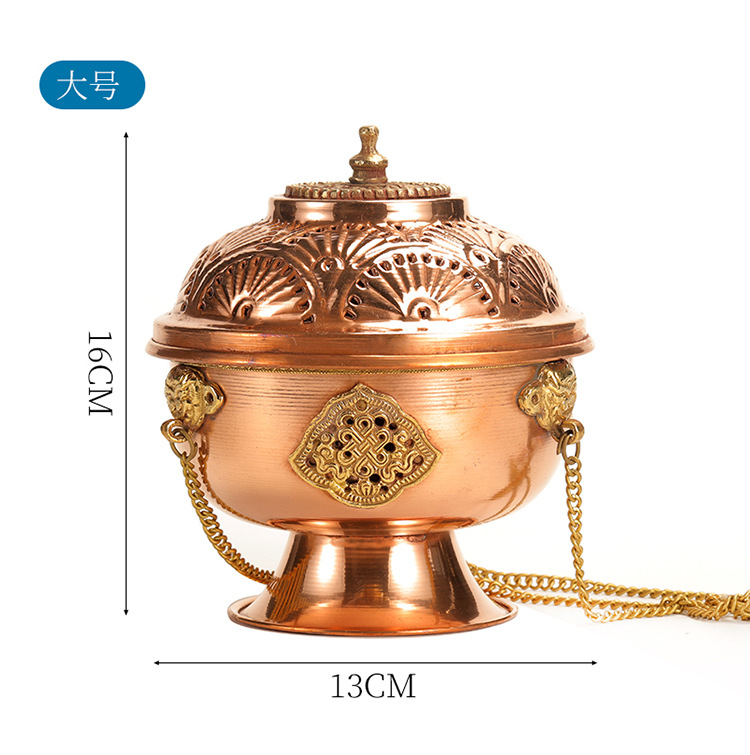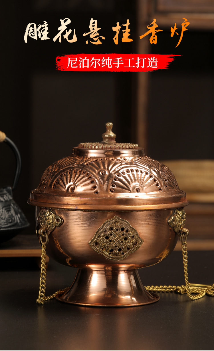 銅吊り下げ香炉ネパール輸入手作り彫刻レトロ銅盤香炉吊り式銅製薫香炉