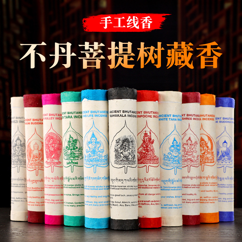 手作り筒装チベット香線香黄財神緑度母薬剤師四腕観音香家庭用薫香仏香供香