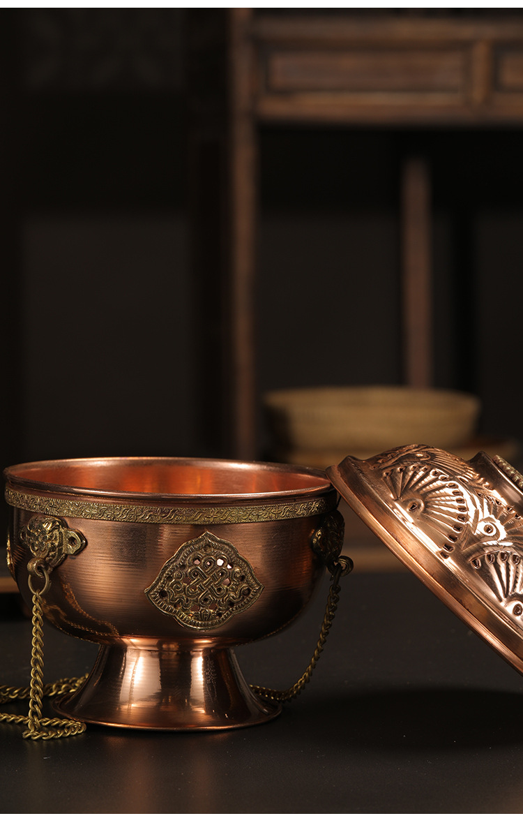 ネパール赤銅吊り香炉手彫りレトロディスク香炉吊り銅香炉ラウンド炉