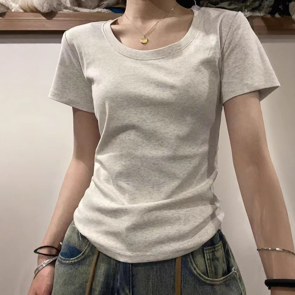 純綿右肩Vネック夏半袖Tシャツレディース通勤新作シンプルベーシック万能スリム痩身ホットガールトップ