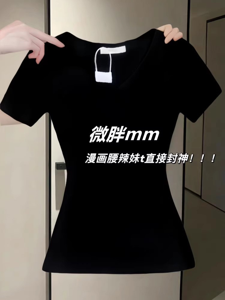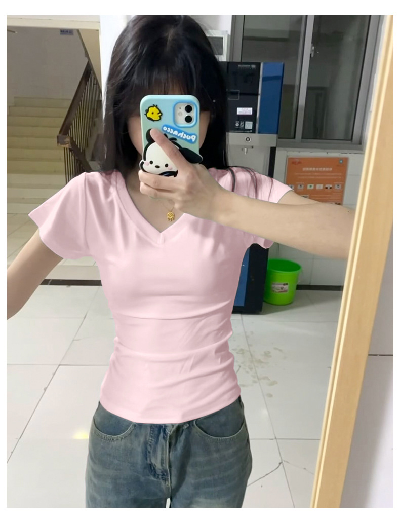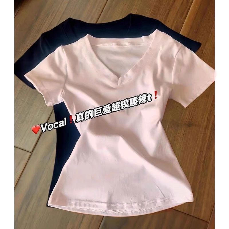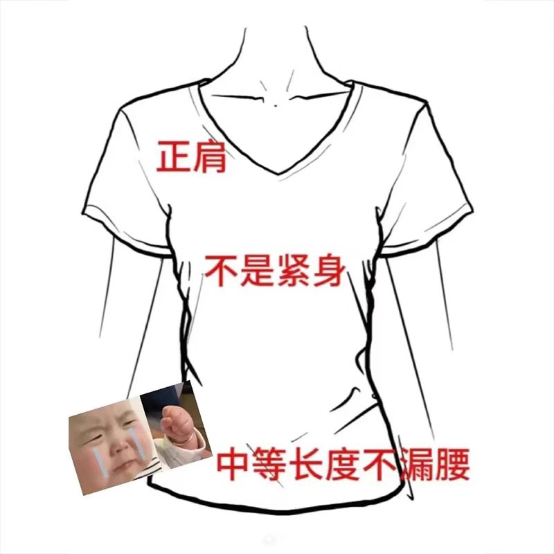 正肩vネック半袖t女綿夏2025年新型修身ウエストを締めて底を打って痩せた上着を見せます。
