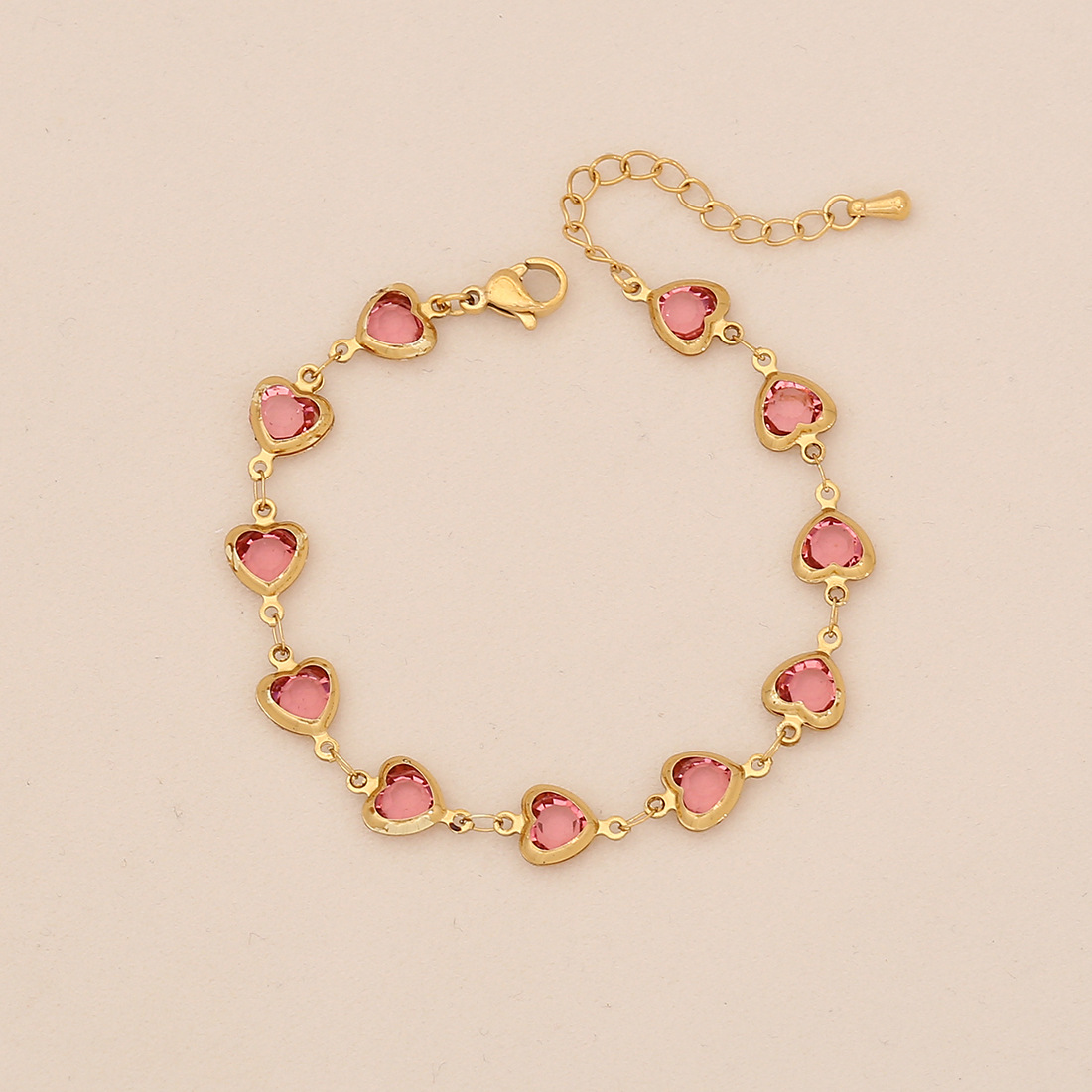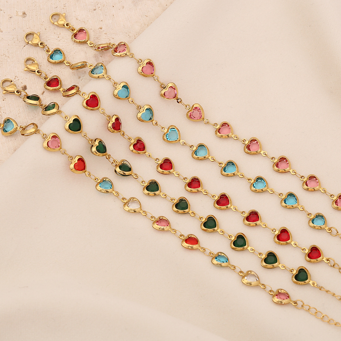 クロスボーダーの人気愛の縁取りガラスチタン鋼のブレスレットに金メッキの足のチェーンのネックレスの腰のチェーンの個性の桃の心の装飾品を象眼します。