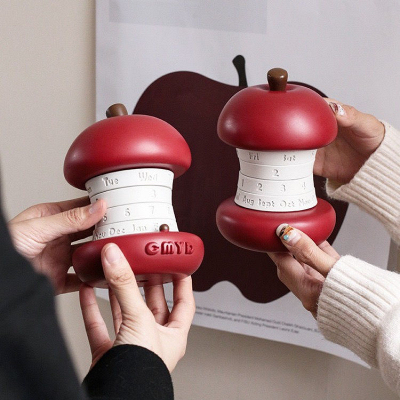 苹果旋转日历1件设计创意万年历可对象礼物桌面装饰摆件