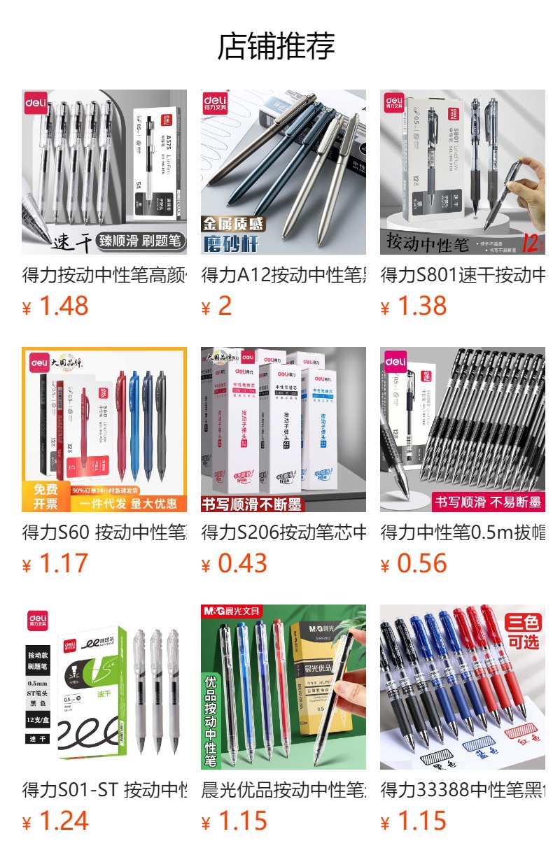 有力S08押し中性ペン0.5mm黒芯サインペン赤押し水筆学生試験炭素ペン