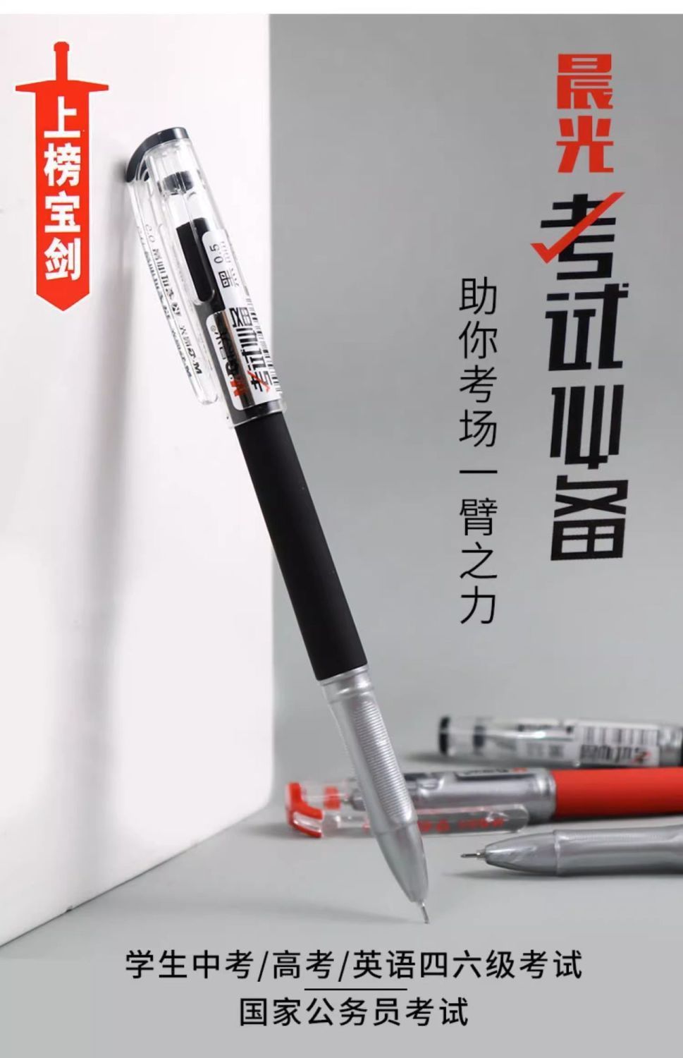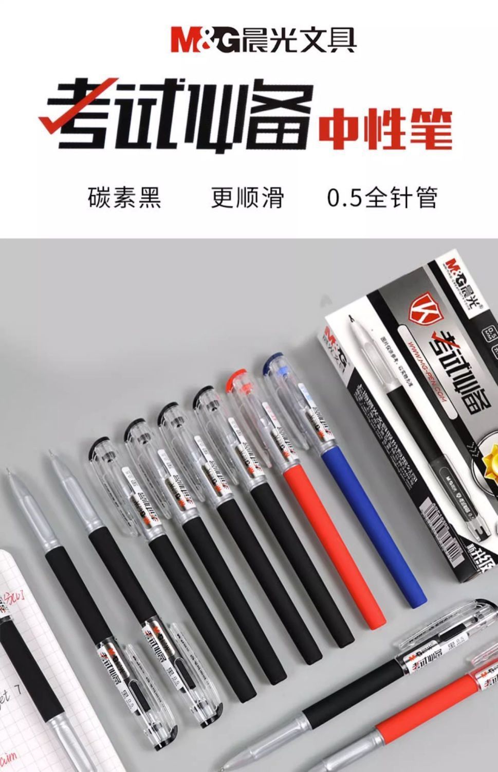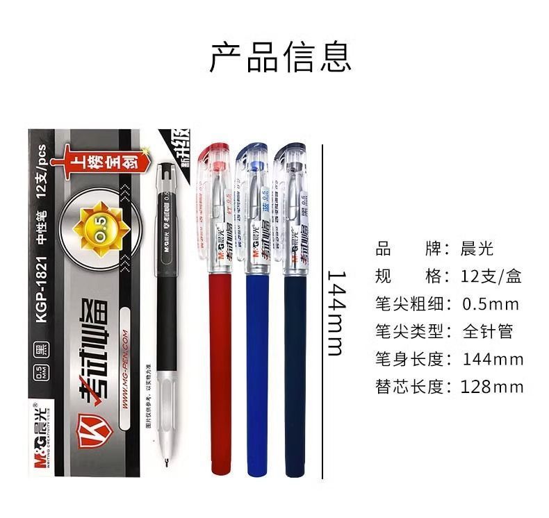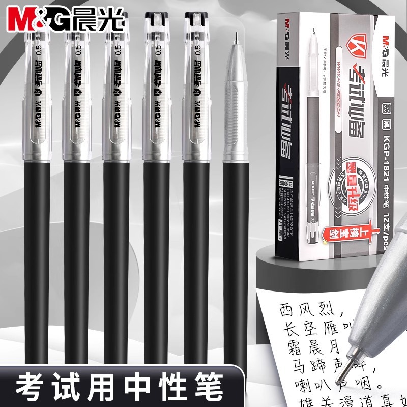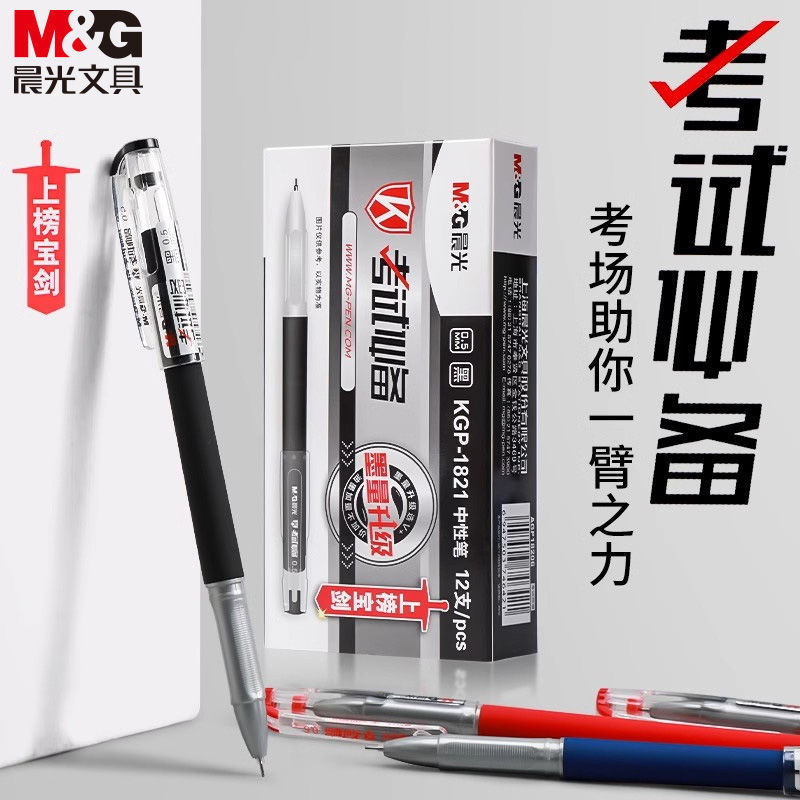 晨光1821考试中性笔学生用0.5mm全针管黑色碳素笔考试笔红色水笔