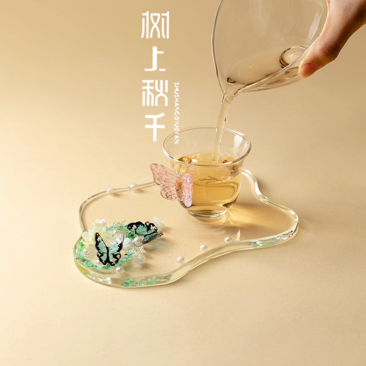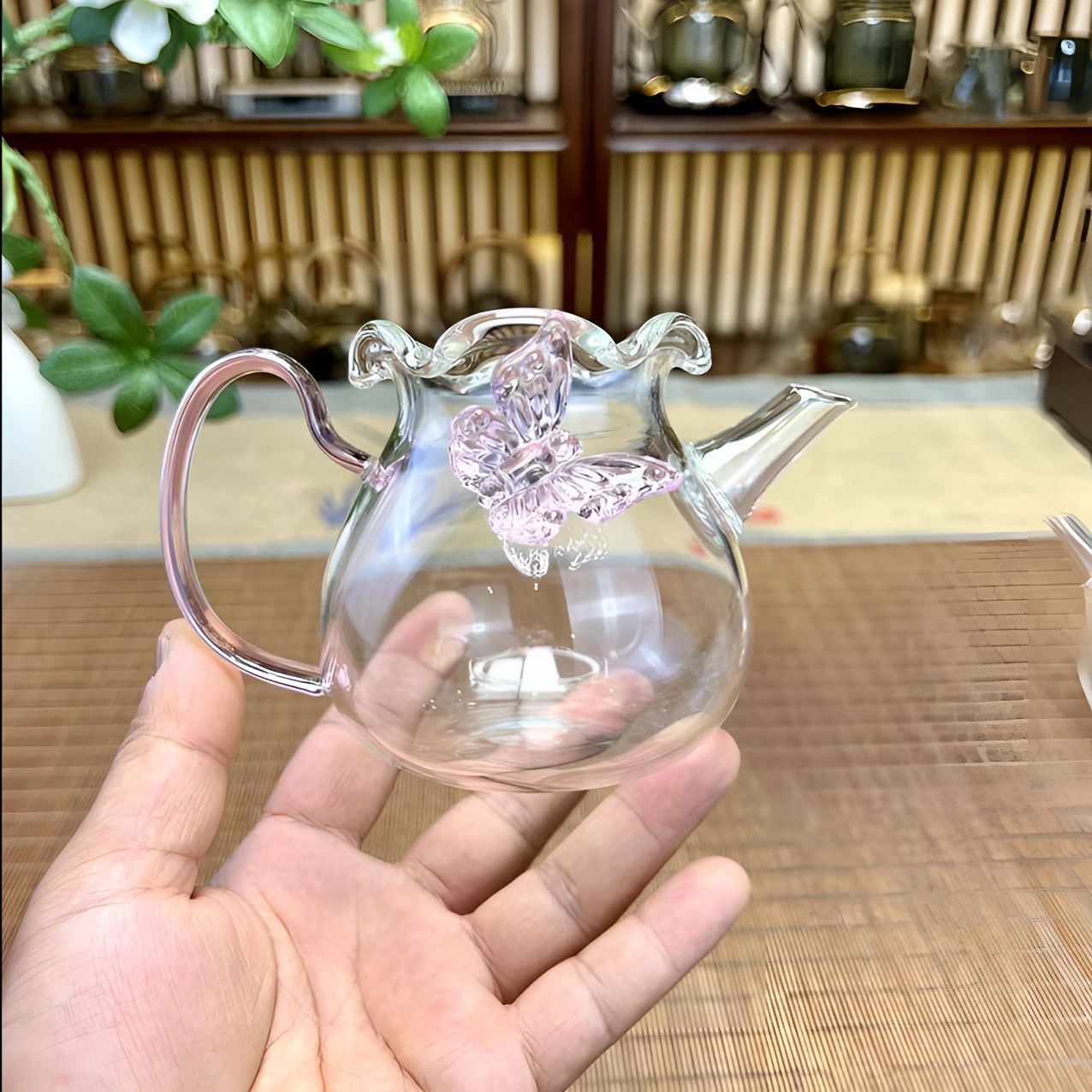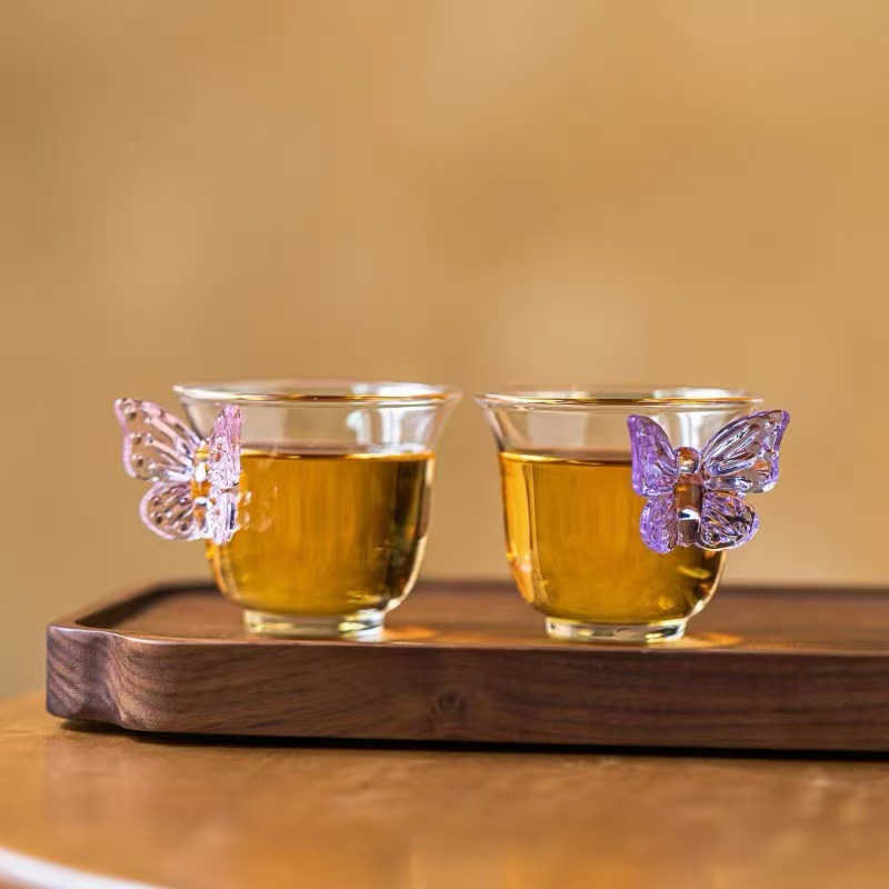 耐熱ガラス製蝶形茶器、絶妙で創造的な家庭用品、透明な茶器、和風茶器