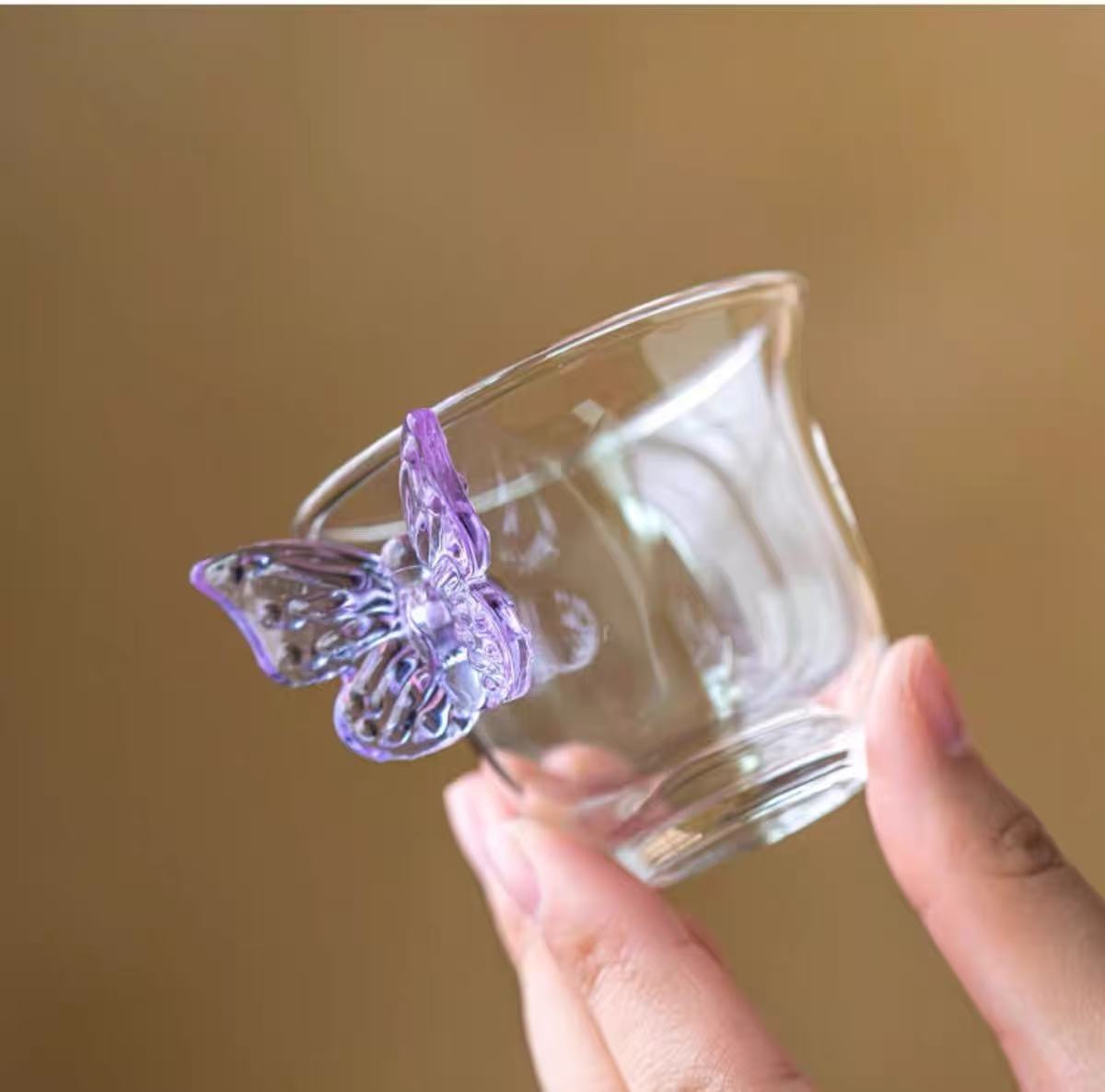 透明玻璃杯蝴蝶铃铛杯耐热小清新茶杯高硼硅个人专用主人杯品茗杯