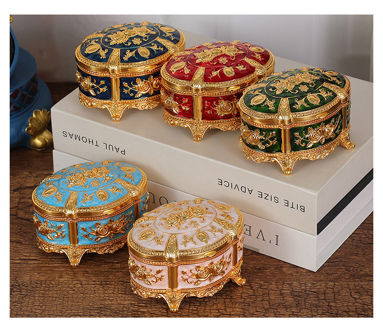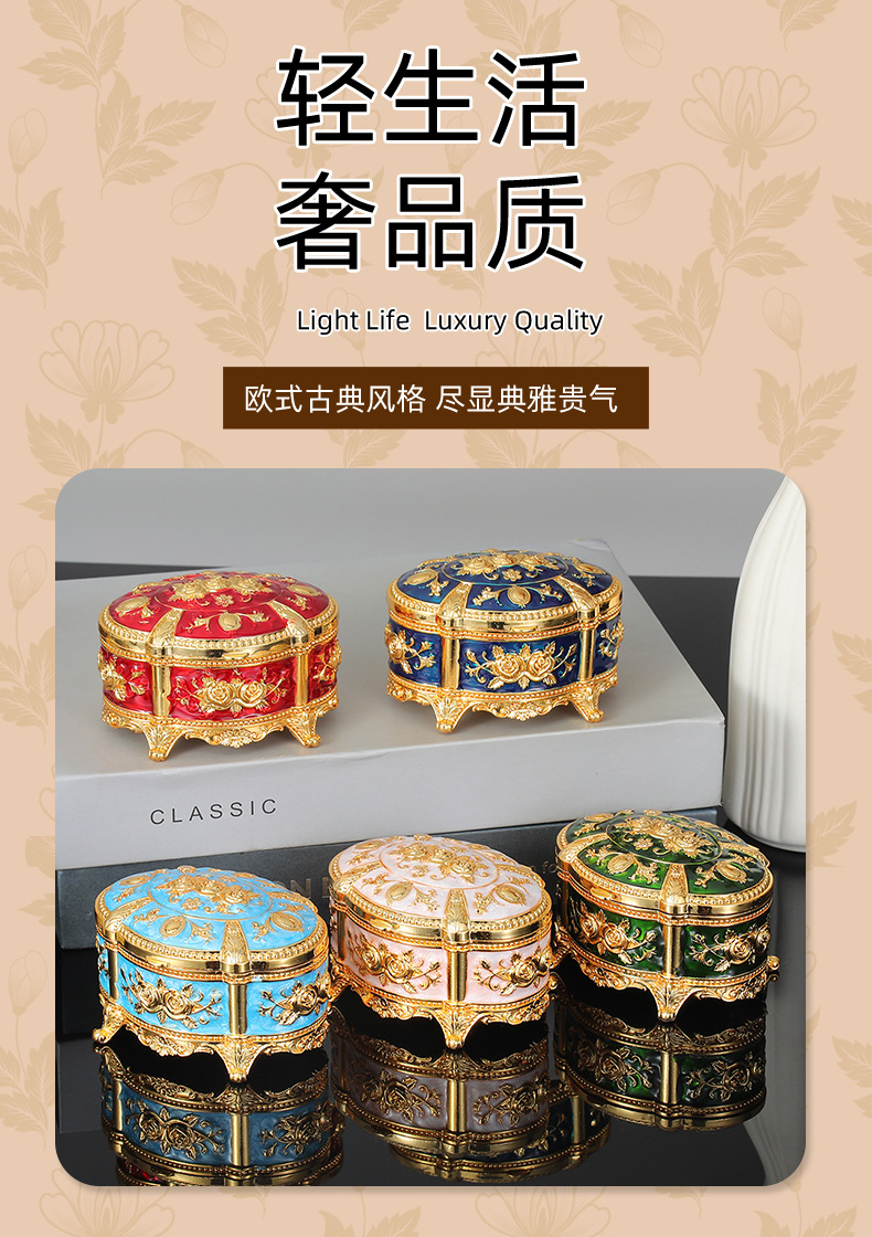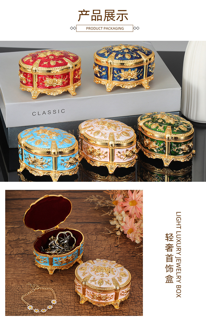 国境を越えた電気商ヨーロッパ式レトロ金属アクセサリーケースの美しいエナメルカラーネックレスジュエリー収納ケースのお姫様アクセサリーケース