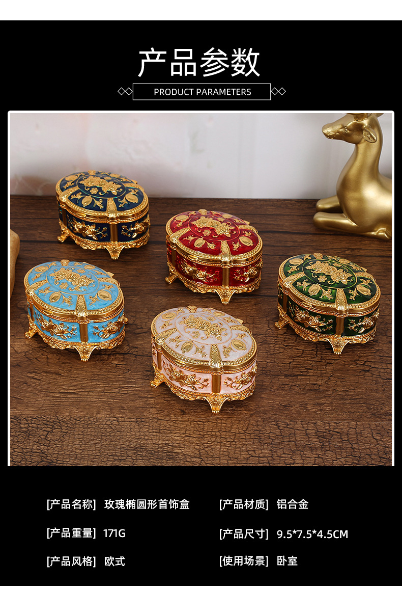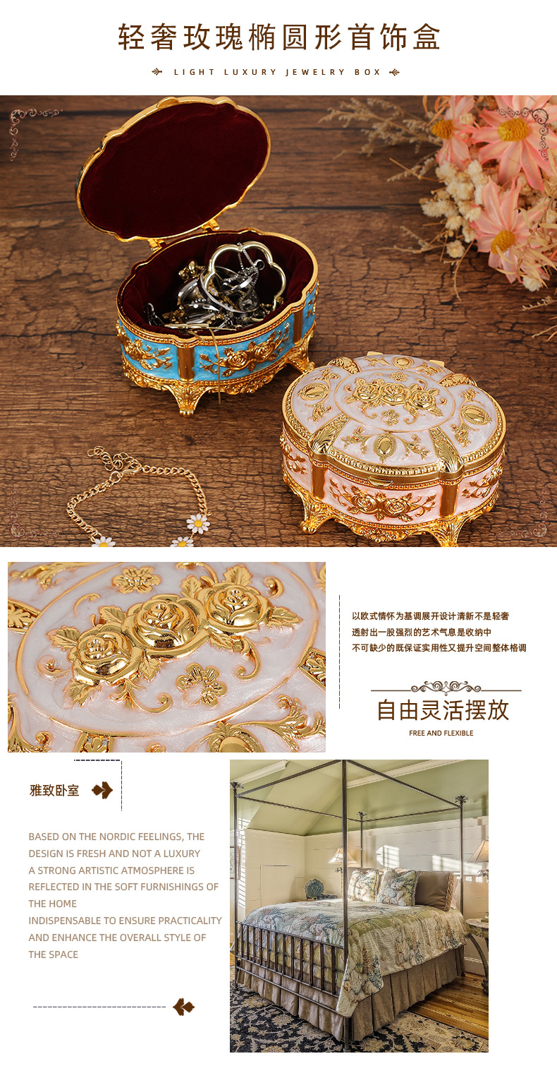 ヨーロッパ式の軽い豪華なレトロなアクセサリーの箱には、楕円形のアクセサリーの箱亜鉛合金のファッション的で美しいアクセサリーの収納箱が入っています。